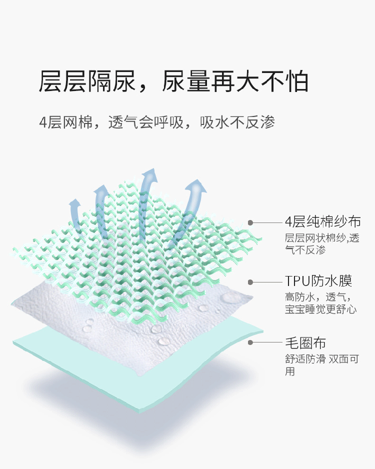 动感光波6层纱布隔尿垫规格70*90cm多色混搭可洗纯棉婴儿隔尿隔尿垫巾新生儿纱布尿片