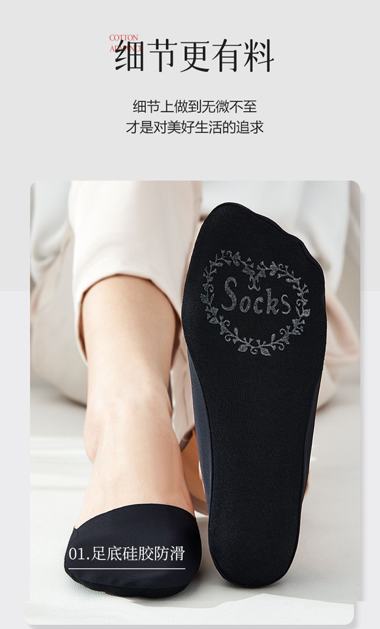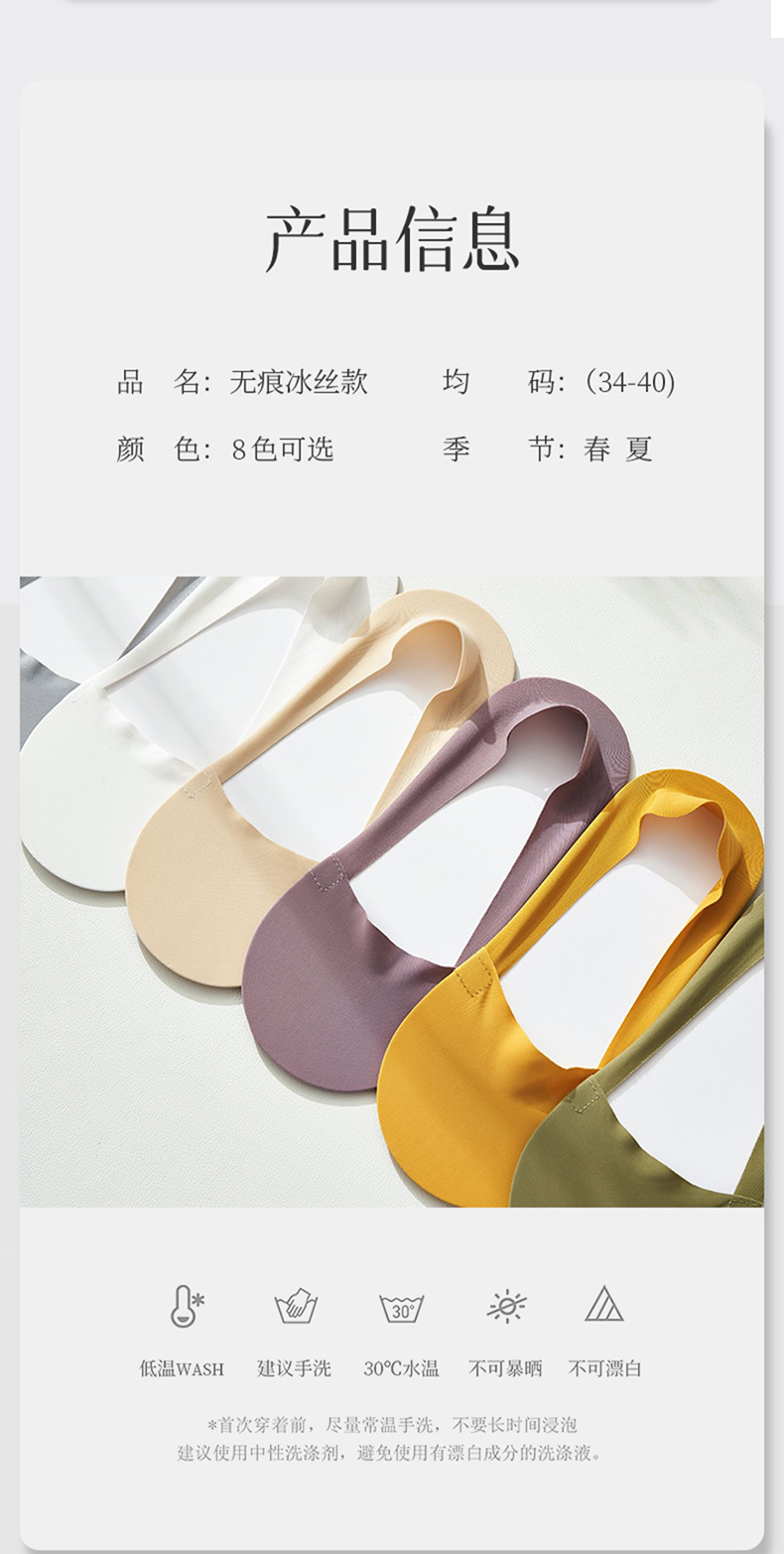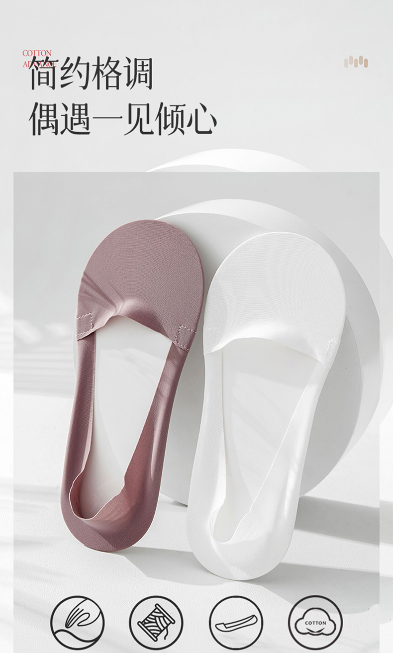 商品名称:【5双装】朝暮栖止女士透气凉爽无痕冰丝款隐形袜硅胶防滑浅口船袜子