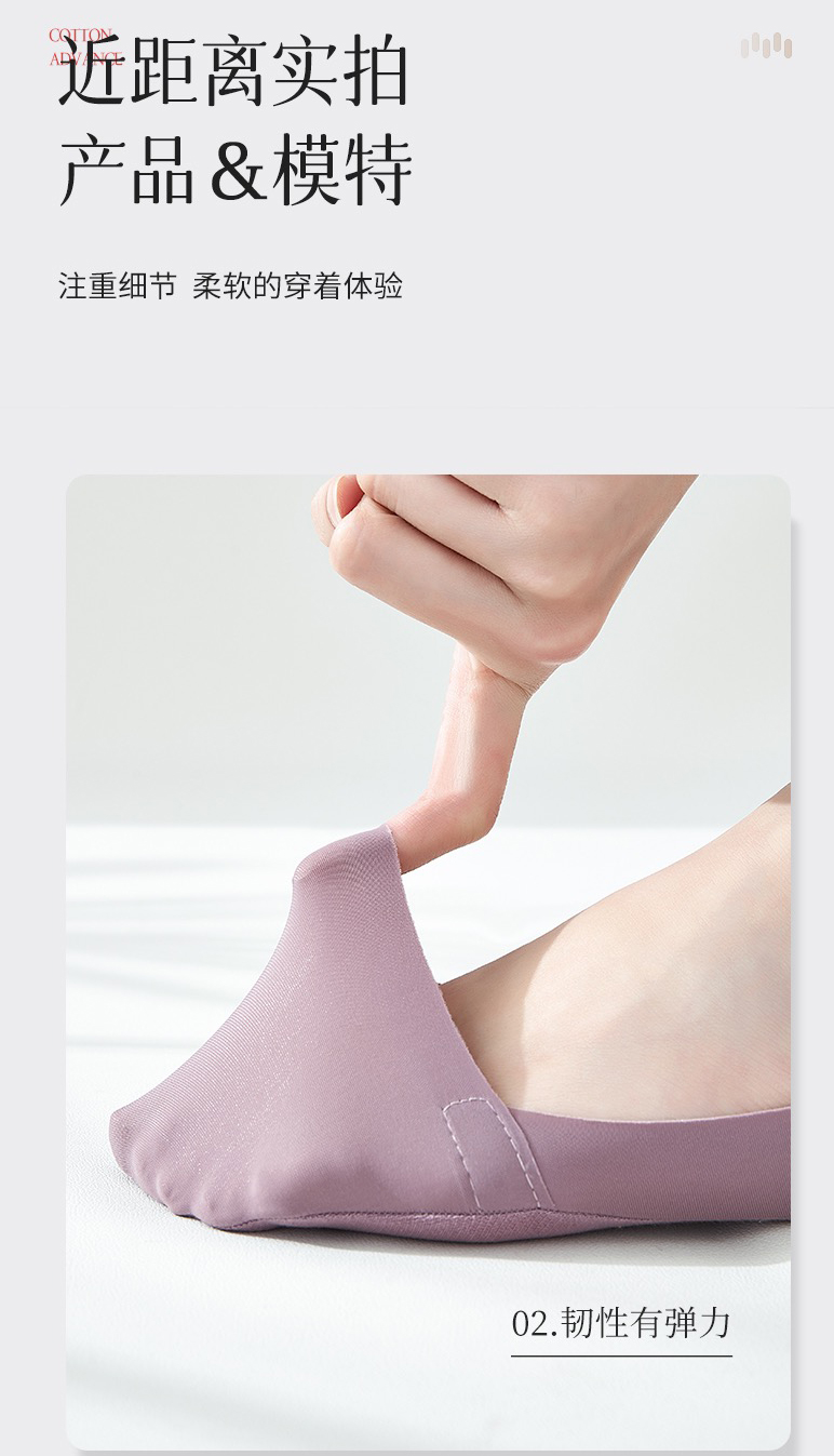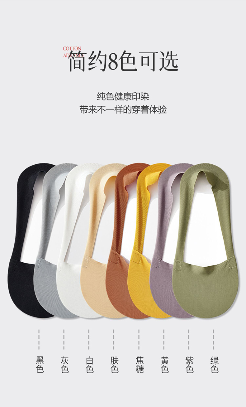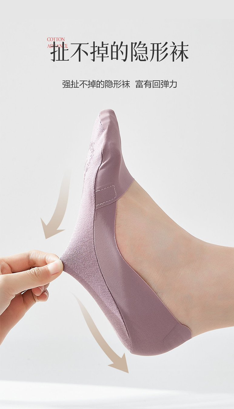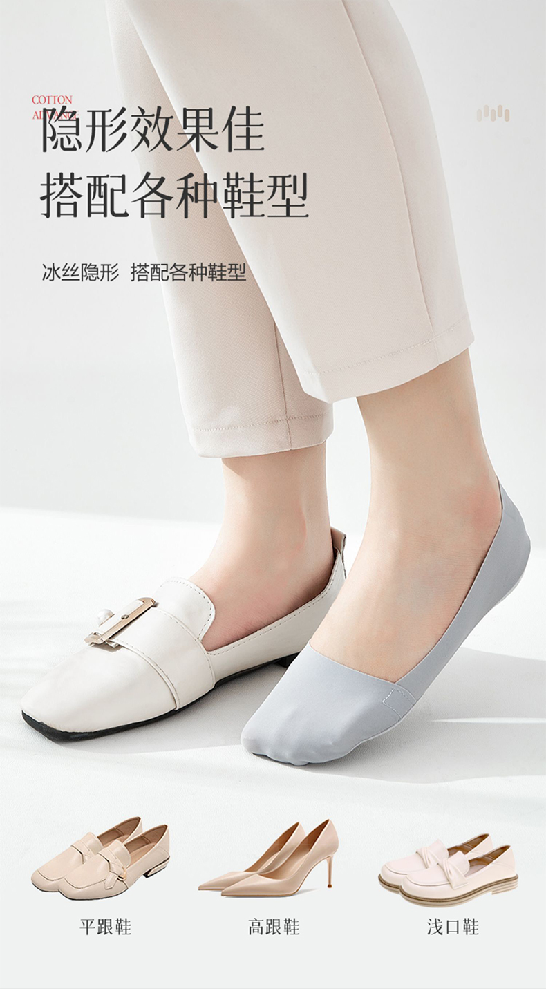 商品名称:【5双装】朝暮栖止女士透气凉爽无痕冰丝款隐形袜硅胶防滑浅口船袜子