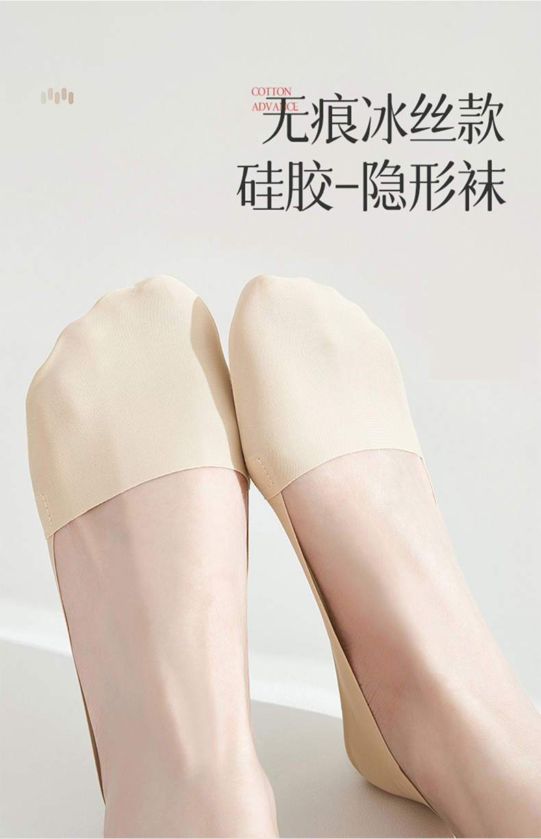 【5双装】朝暮栖止女士透气凉爽无痕冰丝款隐形袜硅胶防滑浅口船袜子