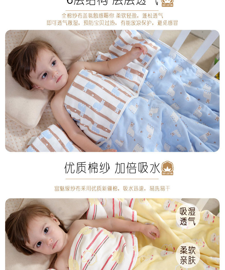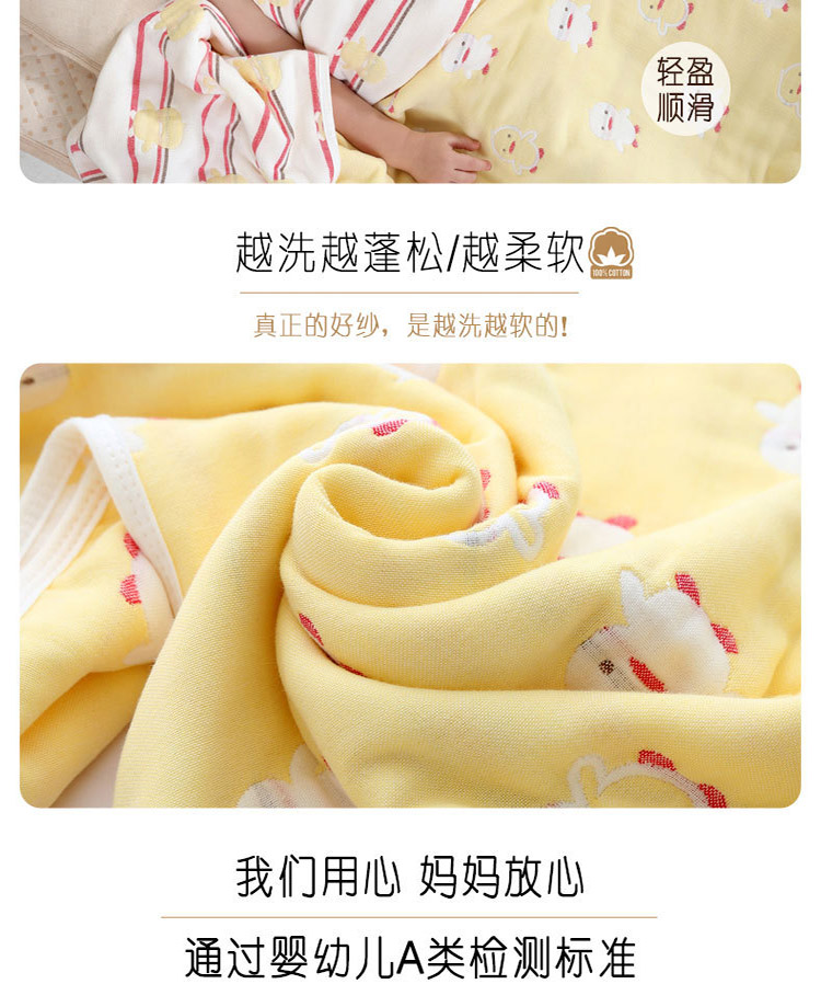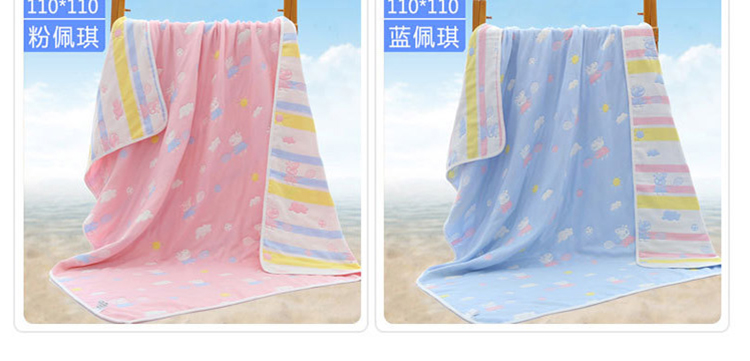 商品名称:动感光波6层纱布提花童被小猪佩奇云朵等多个花型
