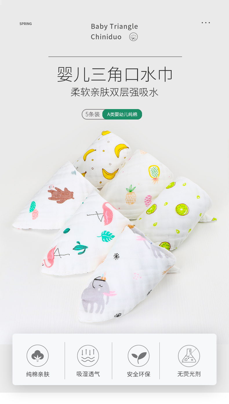 商品名称:6层纱布纯棉三角巾口水巾儿童新生儿口水巾围嘴纱布婴儿围兜小方巾三角巾口水小方巾
