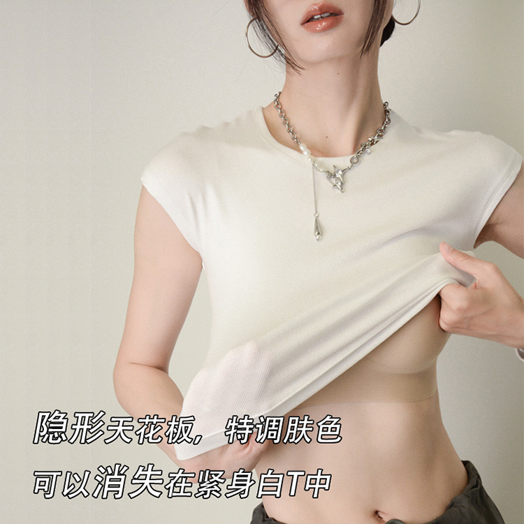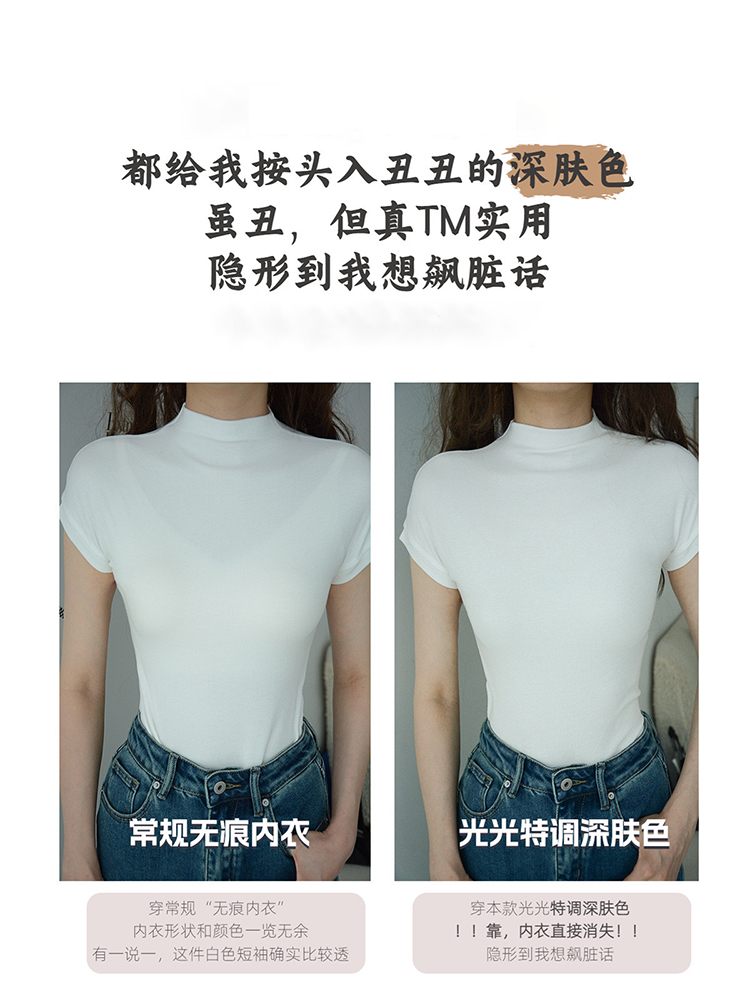 简约百搭纯色基础款含桑蚕丝圆领针织杉女打底衫短袖T恤夏 346515