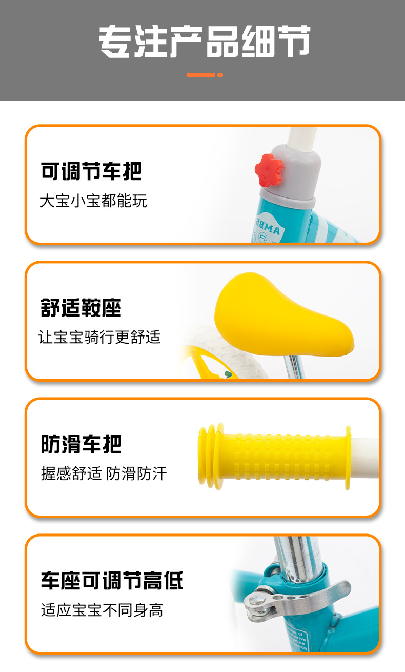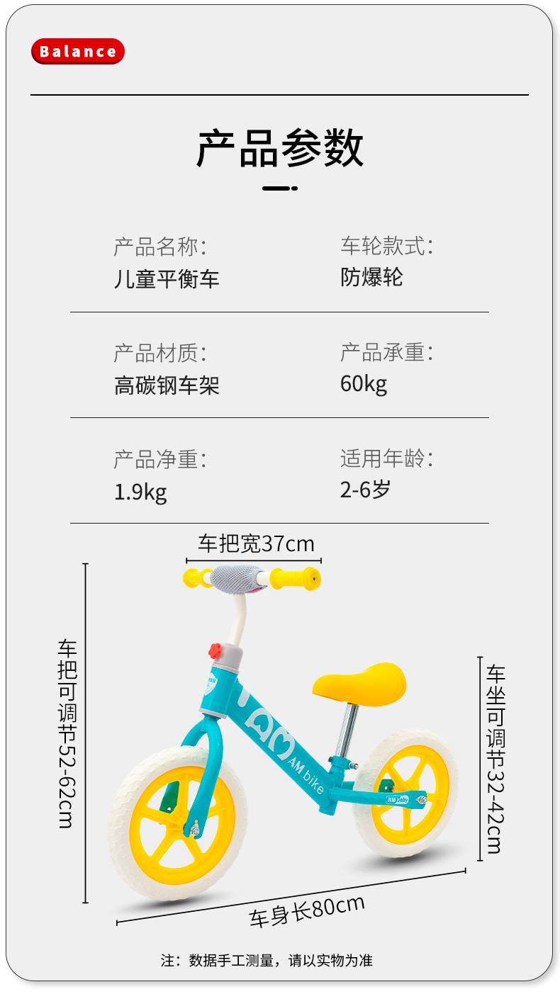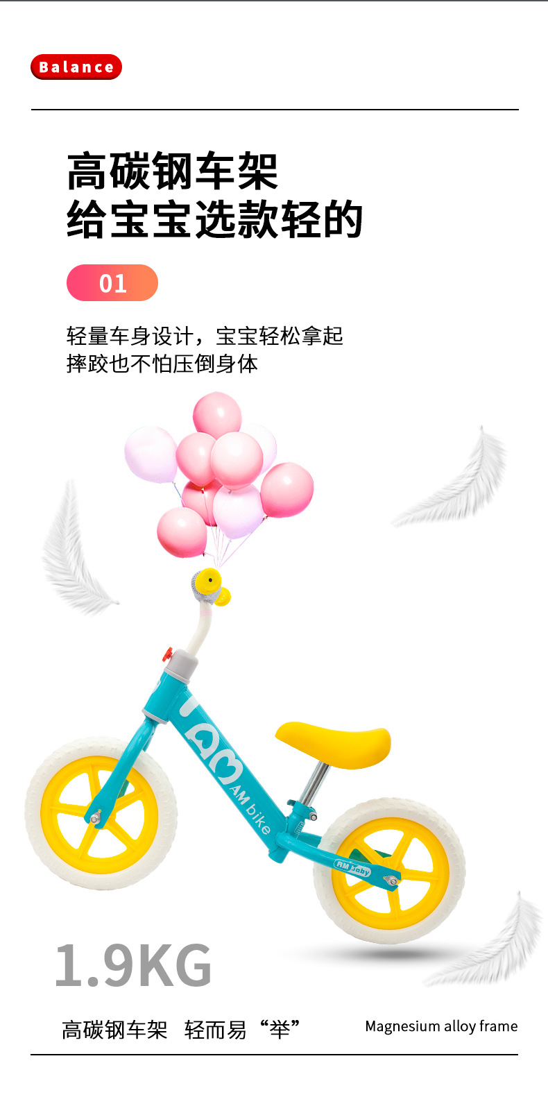 商品名称:小盟主两轮无脚踏滑行车12寸儿童平衡车单车滑步车(无充气发泡轮)