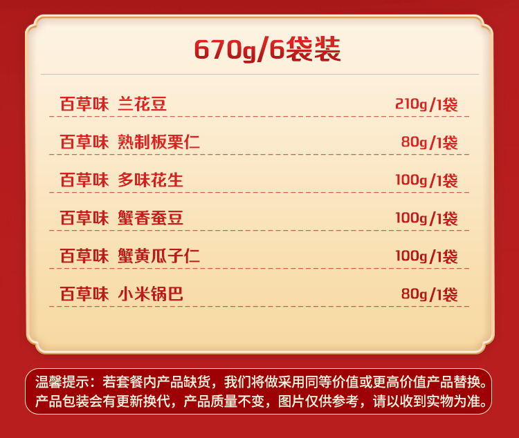 商品名称:百草味 鸿运小礼礼包670g 年货坚果零食大礼包组合整箱网红健康小吃休闲食品礼品