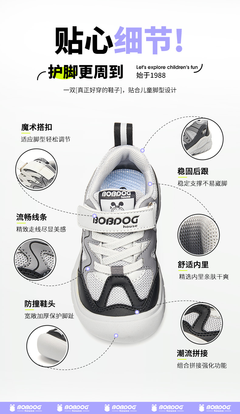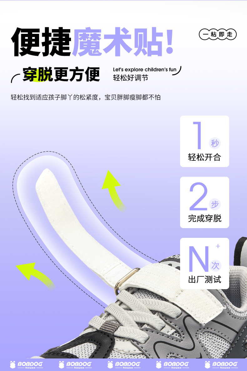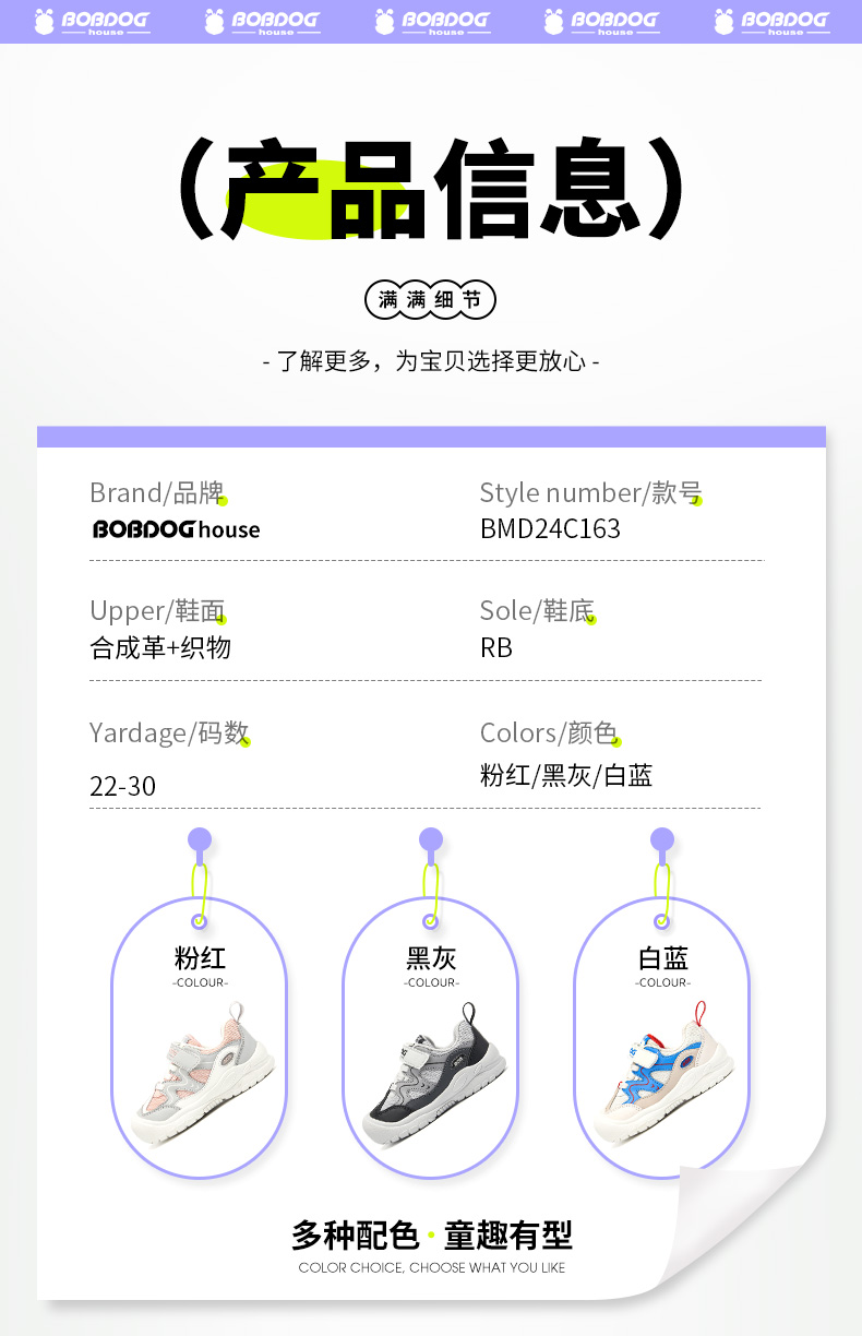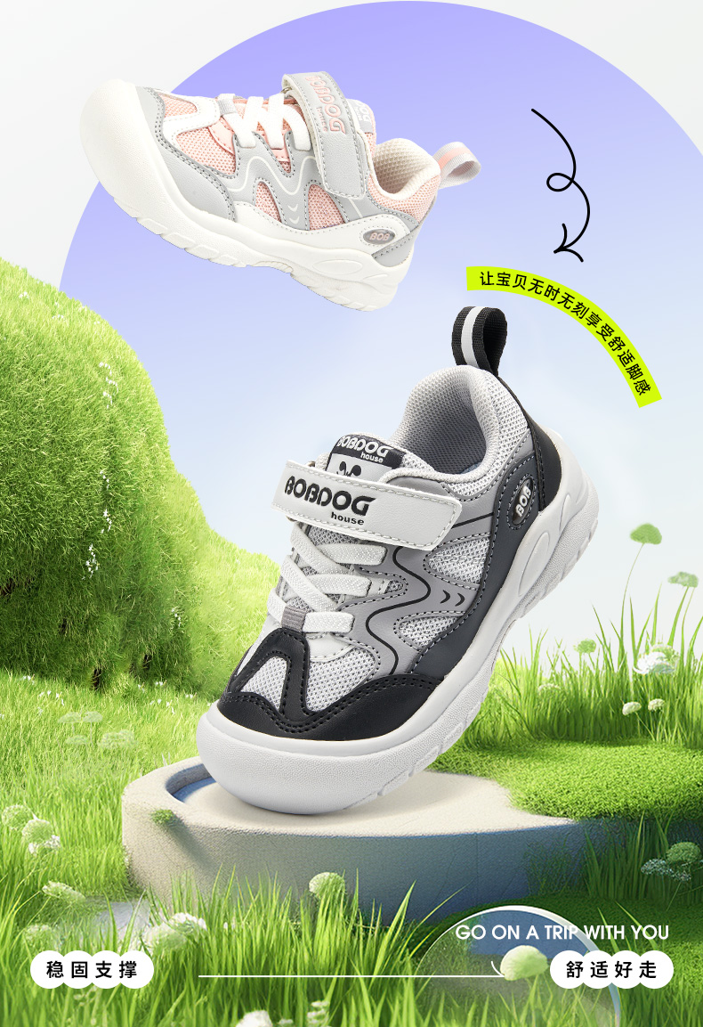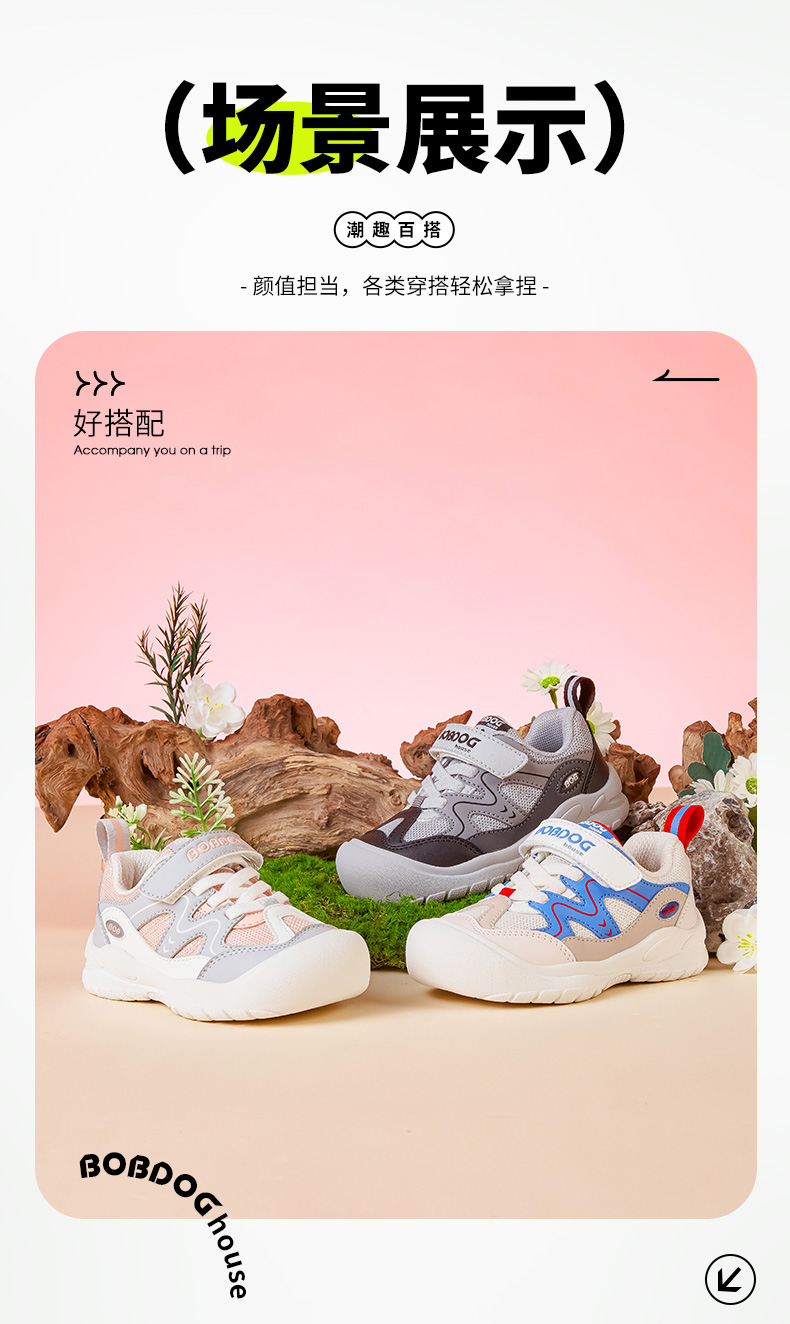 商品名称:巴布豆house童鞋春秋新款小童百搭舒适休闲鞋男童女童魔术贴运动鞋