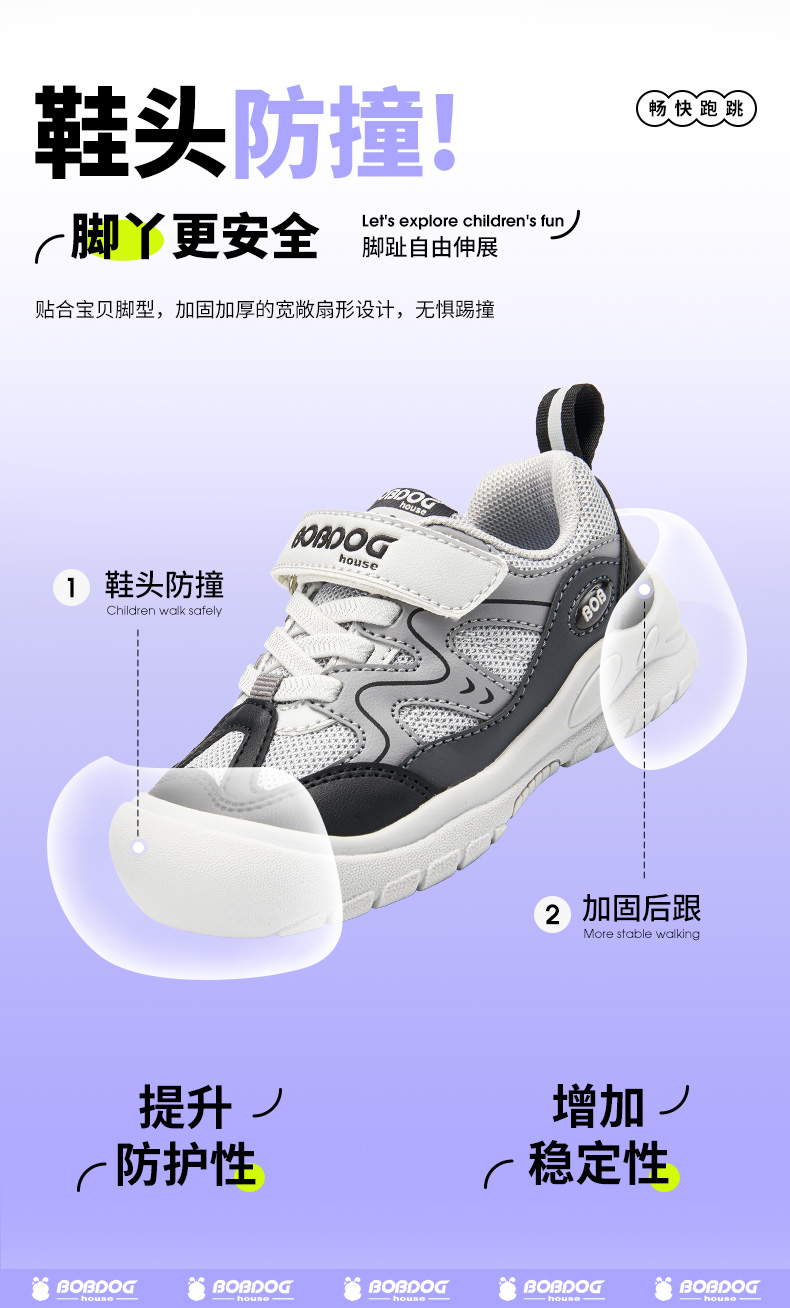 巴布豆house童鞋春秋新款小童百搭舒适休闲鞋男童女童魔术贴运动鞋