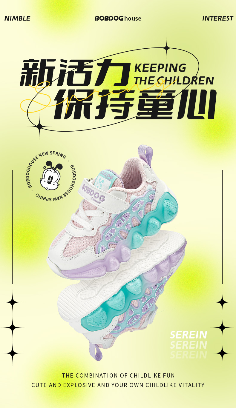 商品名称:巴布豆house儿童【品牌直供】2025春秋新款运动鞋舒适减震中小幼童软底男女童跑步鞋