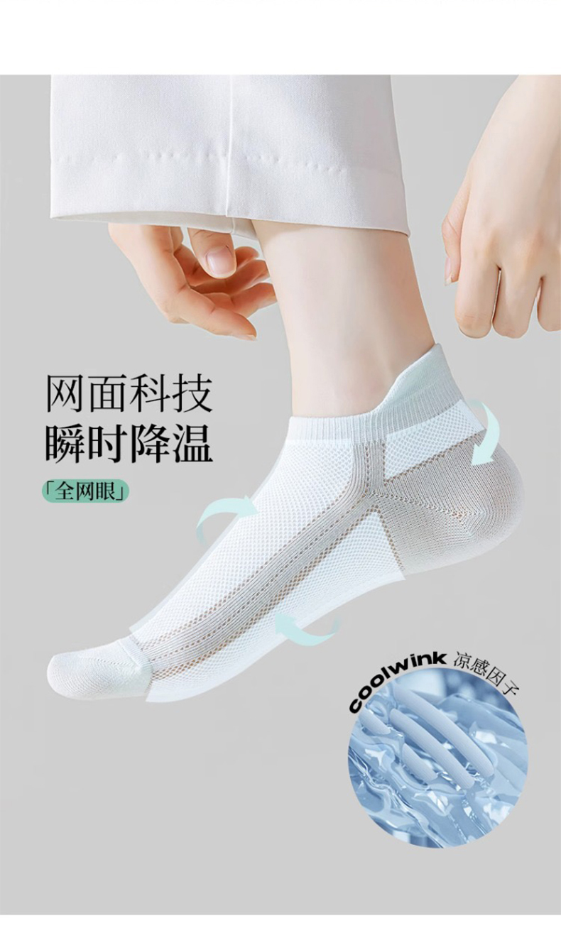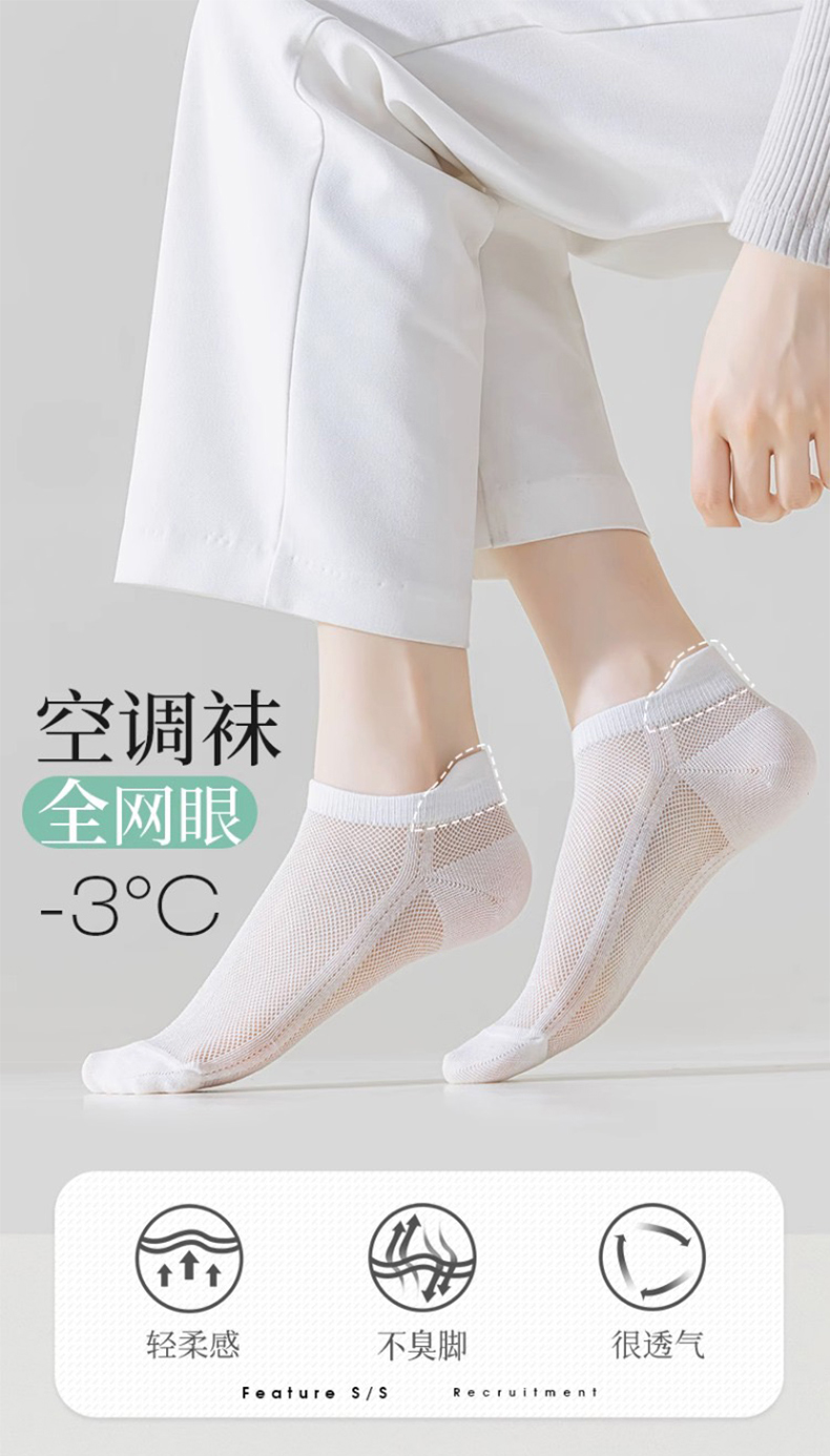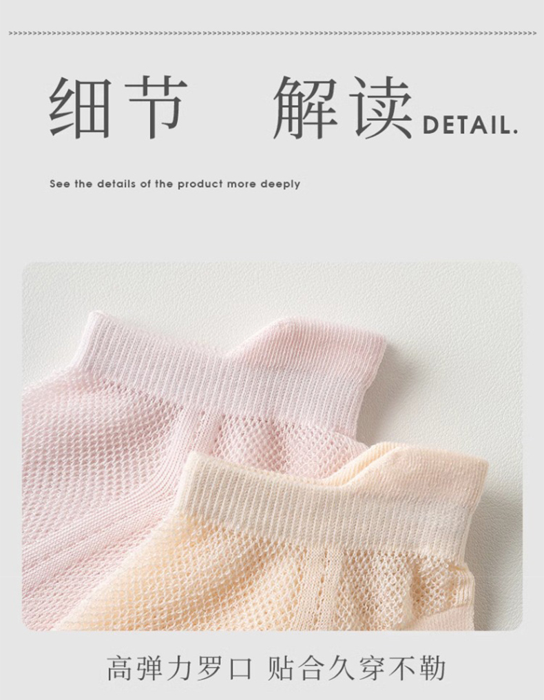 商品名称:【5-10双装】朝暮栖止情侣袜女士网眼提耳纯色透气袜子