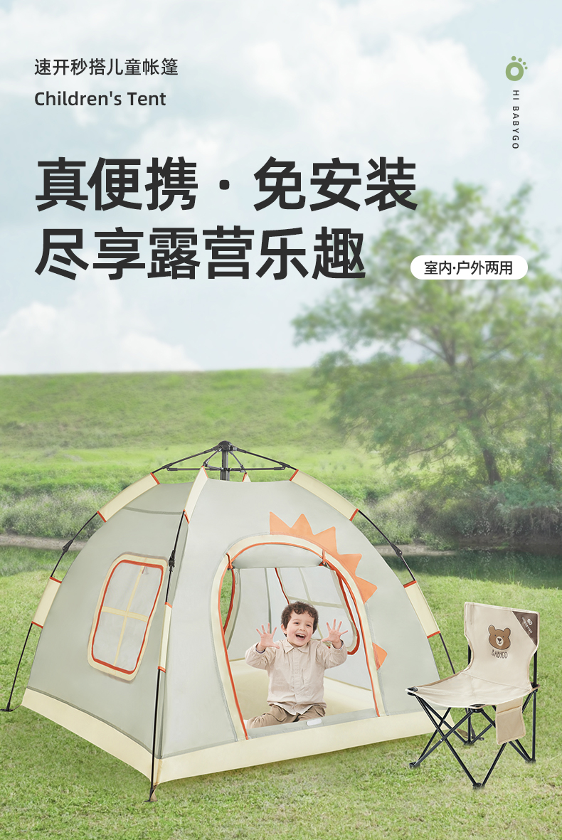 BABYGO儿童室内外可用帐篷野营快速折叠收纳帐篷