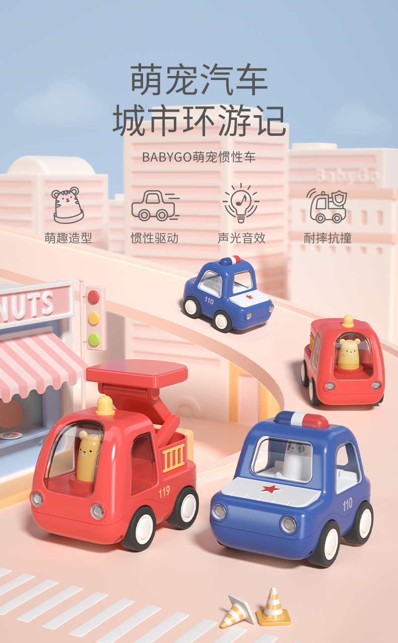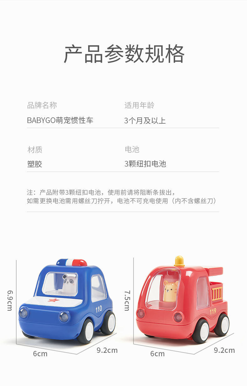 商品名称:BABYGO儿童玩具车惯性车男孩女孩1-3岁警车消防车小汽车玩具套装