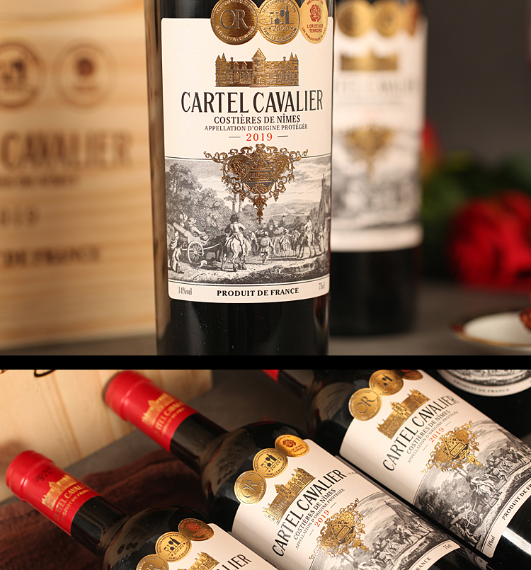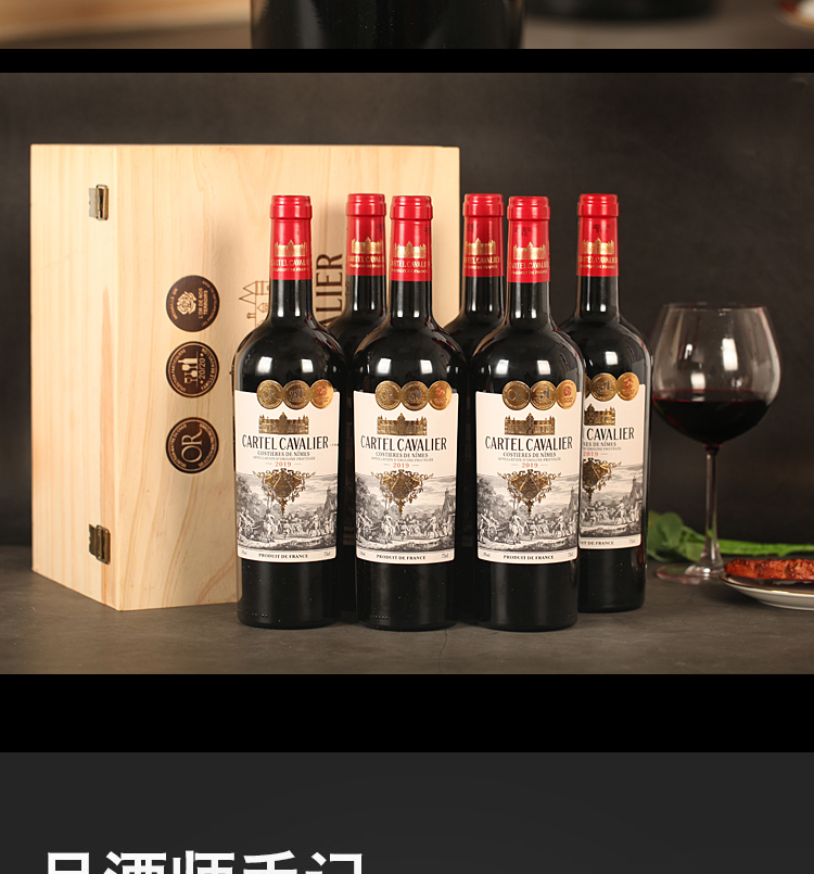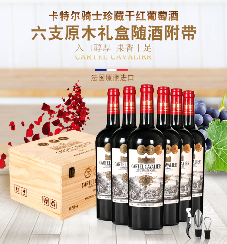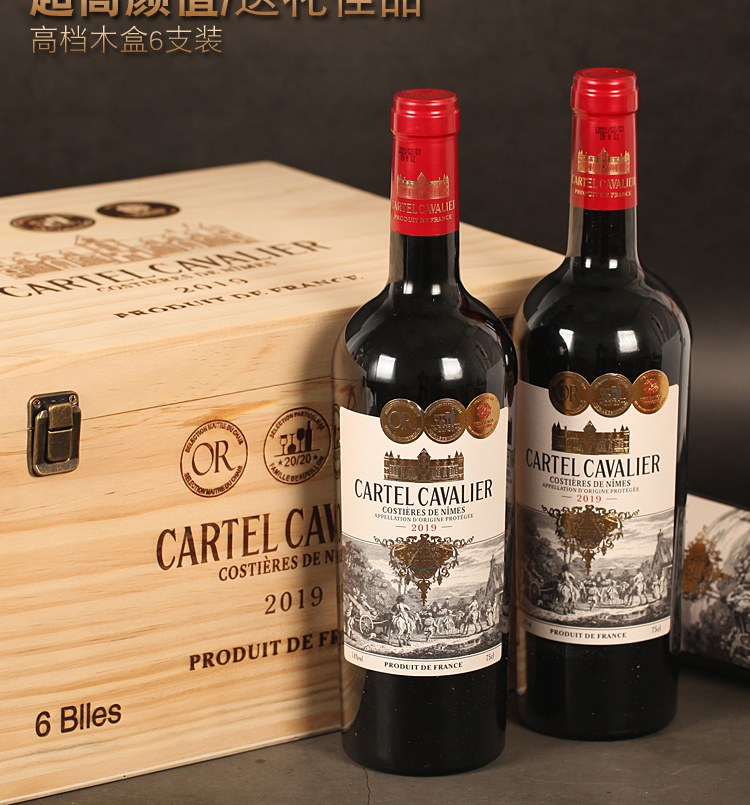 卡特尔法国进口红酒获3金奖骑士珍藏干红葡萄酒750ml*6支精美木箱