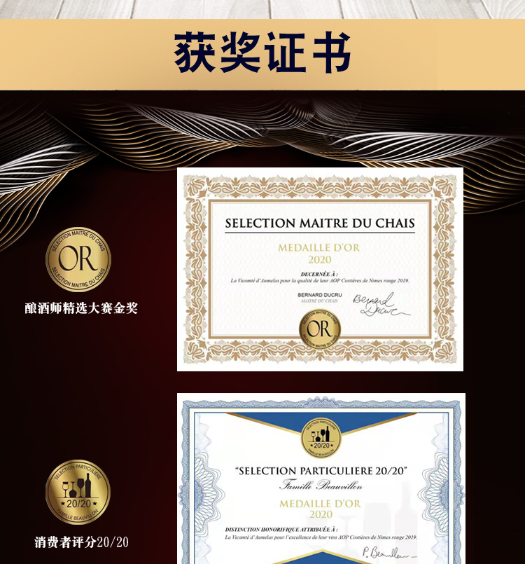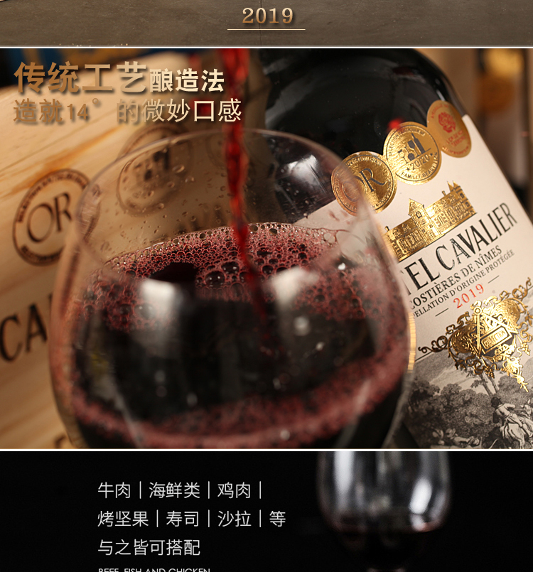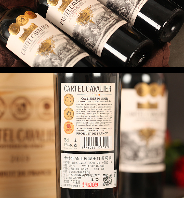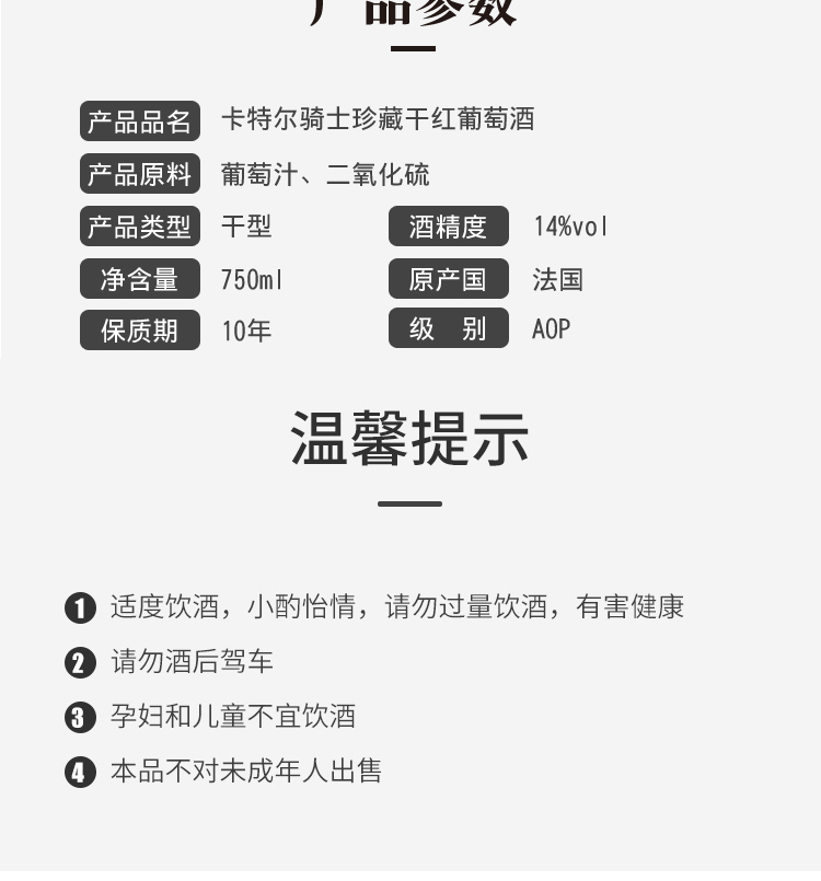 商品名称:卡特尔法国进口红酒获3金奖骑士珍藏干红葡萄酒750ml*6支精美木箱