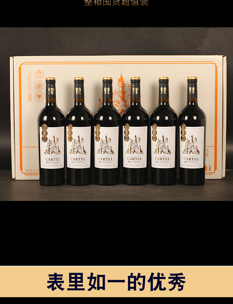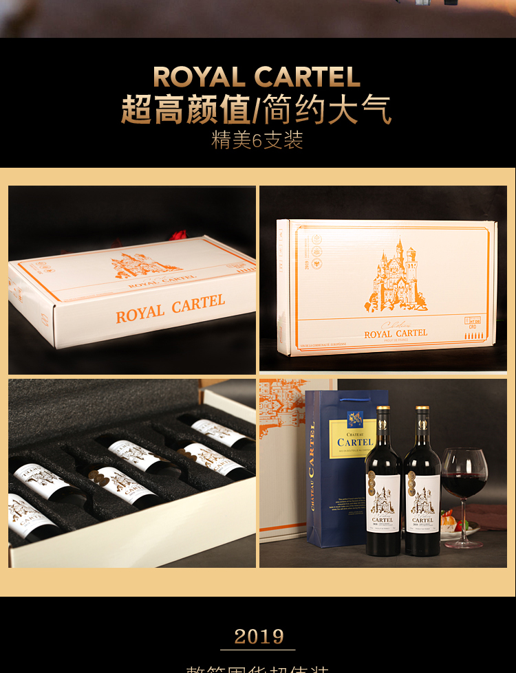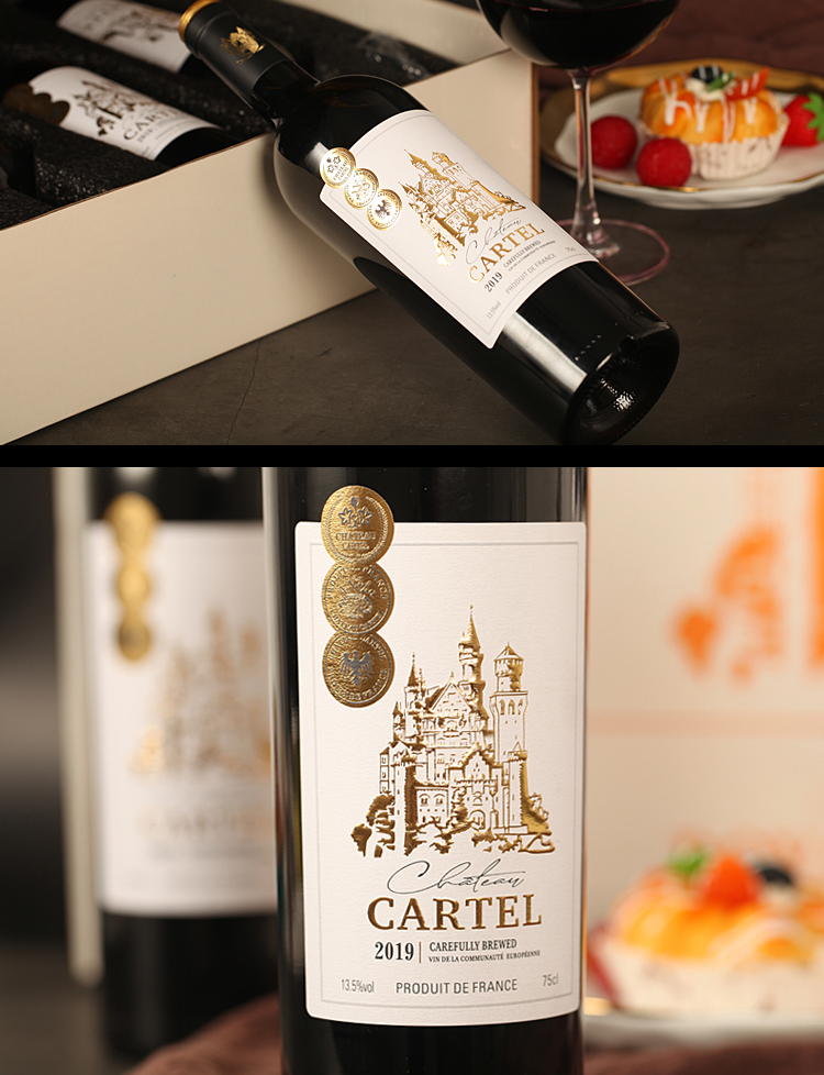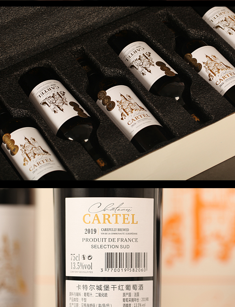 卡特尔法国进口红酒城堡干红葡萄酒750ml*6支带精美礼盒3礼袋整箱