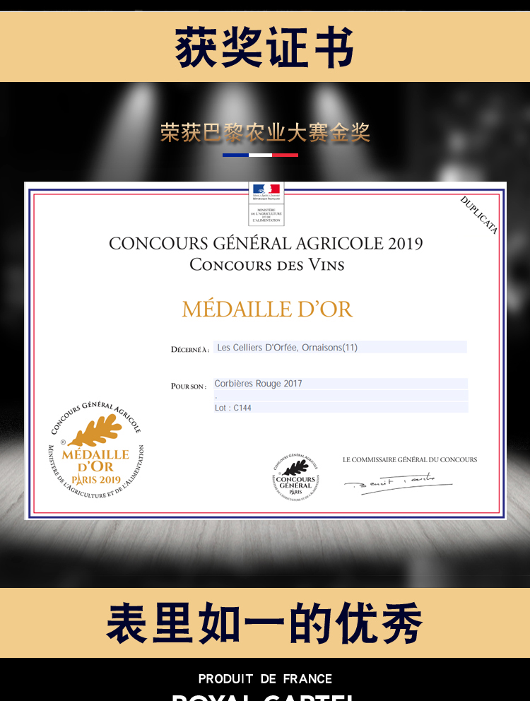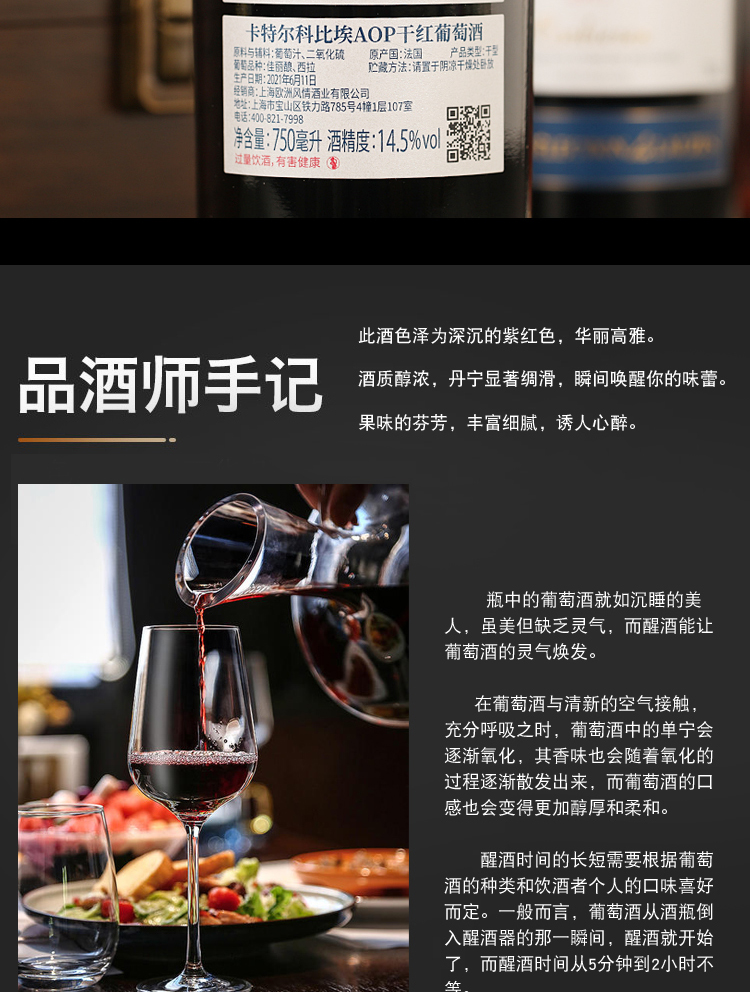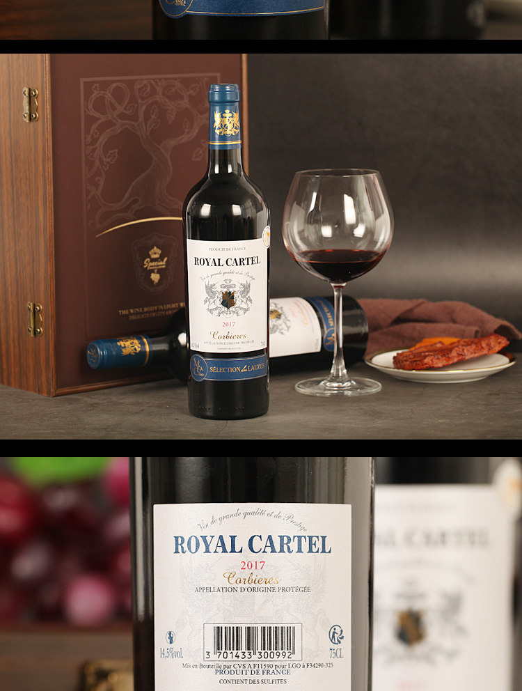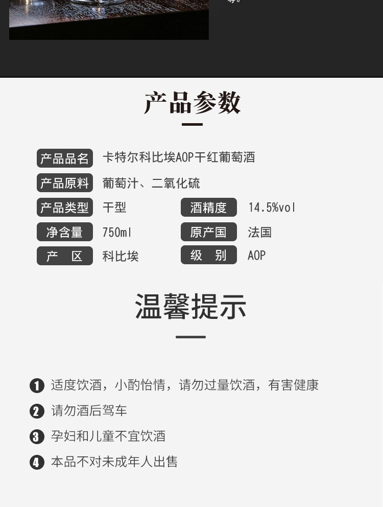 商品名称:卡特尔法国进口科比埃获双金奖干红葡萄酒750ml*2支带精美木箱