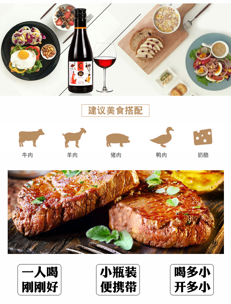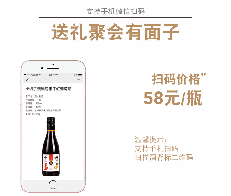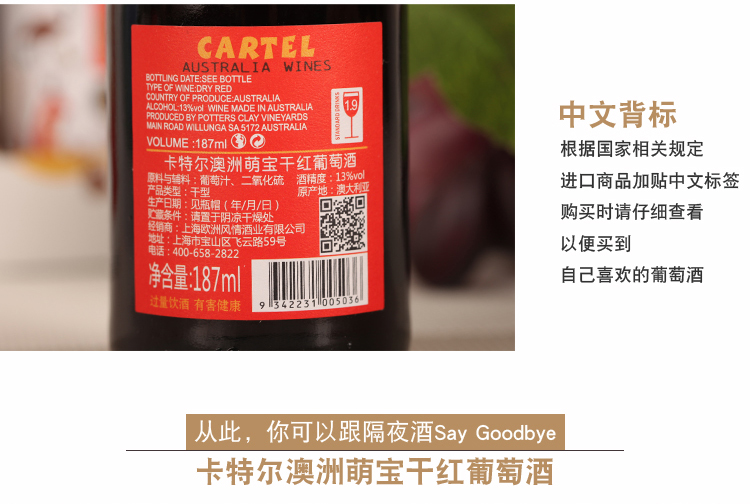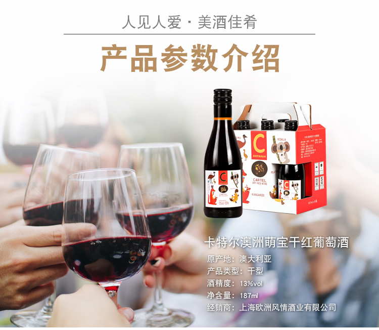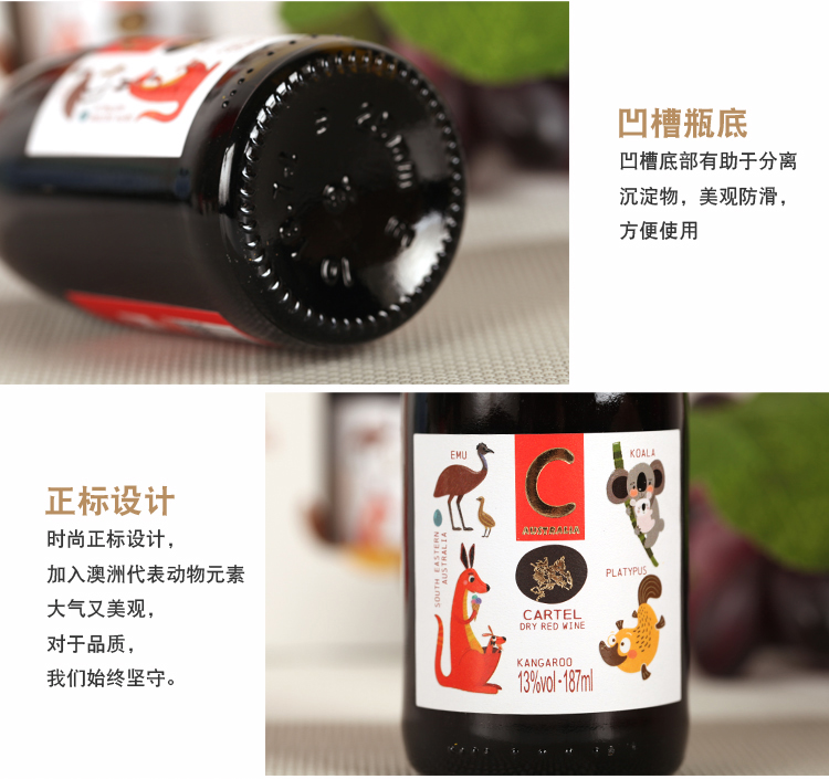 商品名称:卡特尔澳洲进口红酒萌宝干红葡萄酒187ml*6支