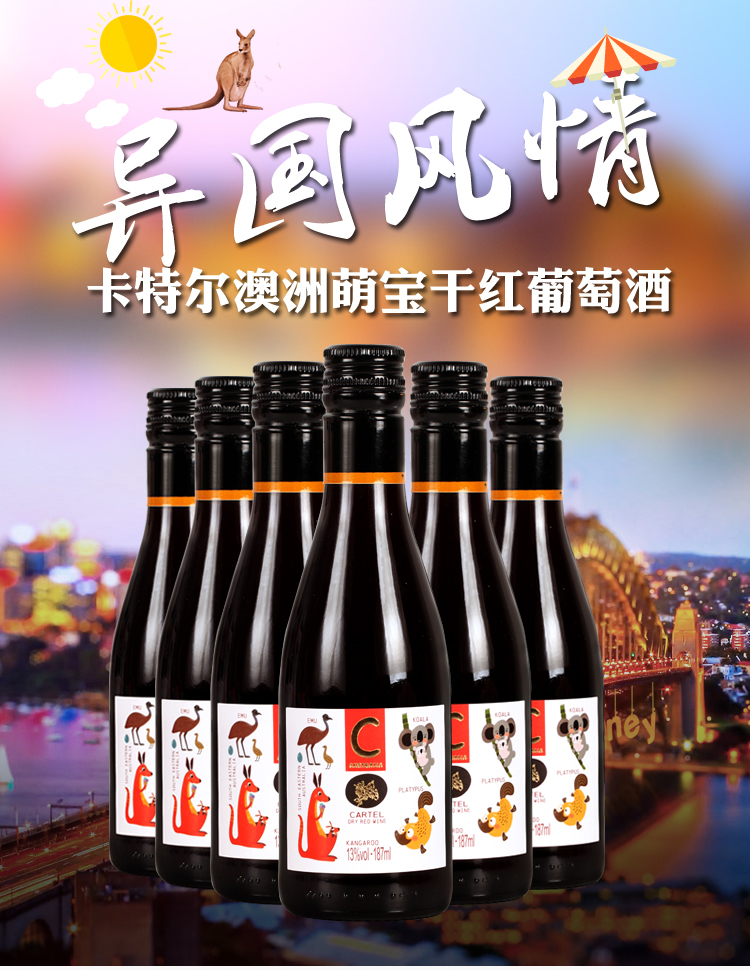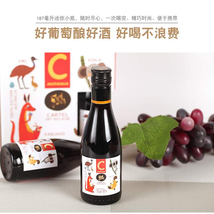 卡特尔澳洲进口红酒萌宝干红葡萄酒187ml*6支