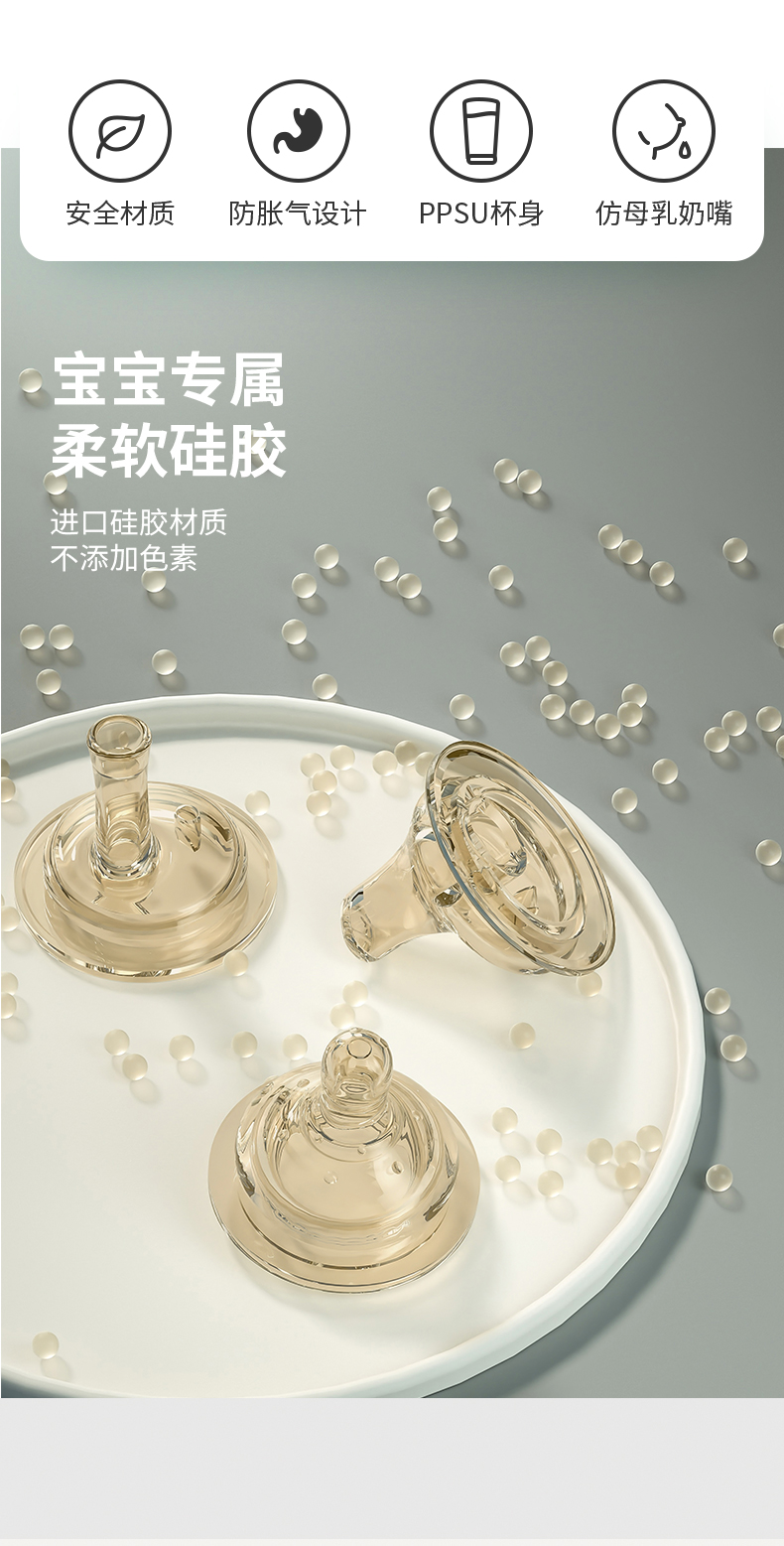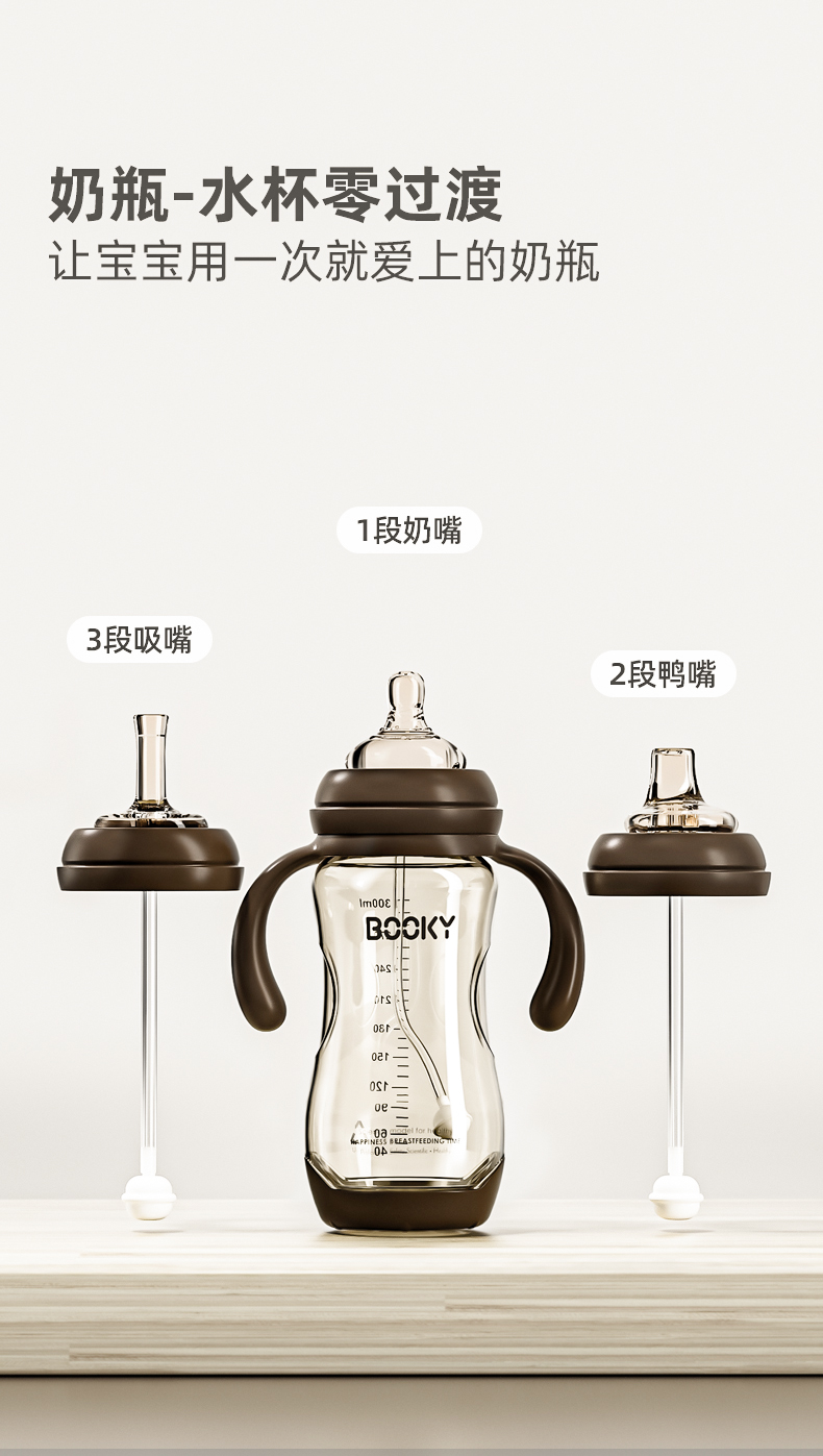 商品名称:【纳米银PPSU一瓶三用】布奇BOOKY宽口径PPSU奶瓶鸭嘴吸管杯(送鸭嘴+吸嘴)240ML/300ML
