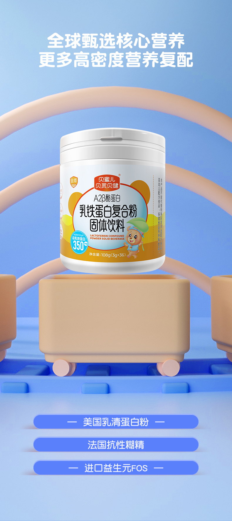 贝蜜儿贝灵贝健金盾A2β酪蛋白乳铁蛋白复合粉儿童成人调制免疫球蛋白粉
