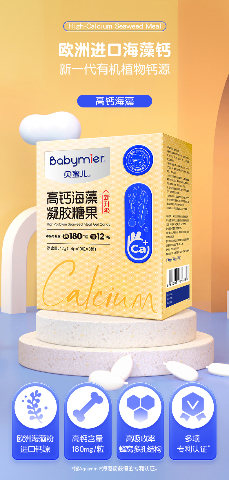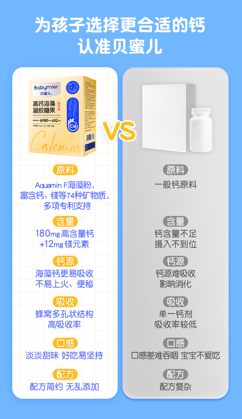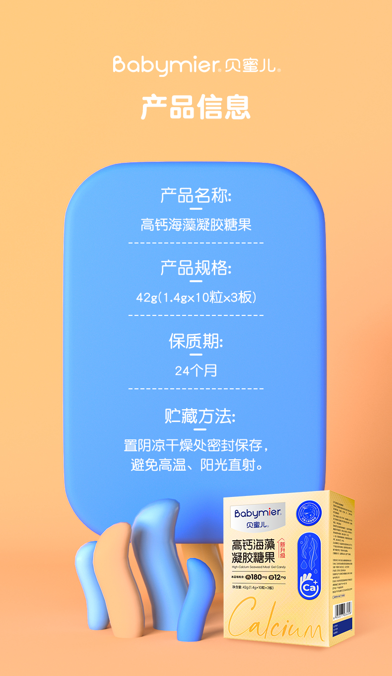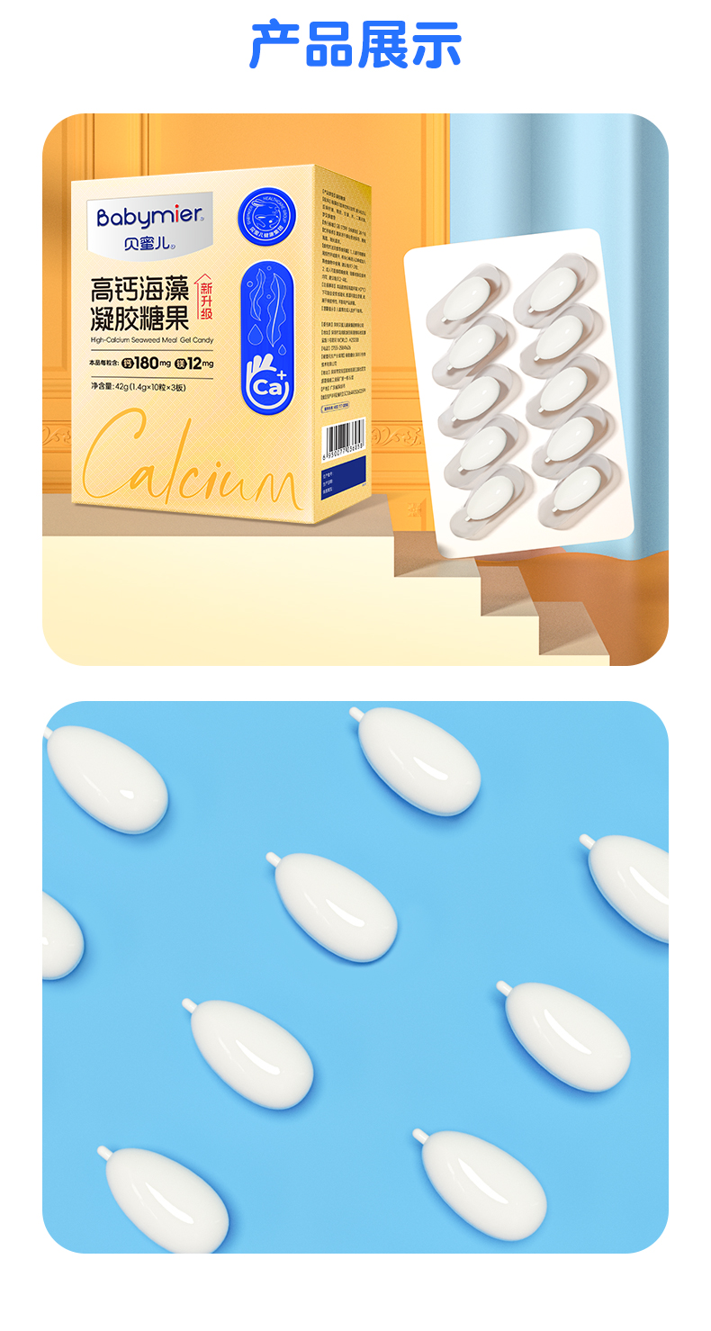商品名称:【25年升级180mg】贝蜜儿海藻钙高钙凝胶糖果软胶囊宝宝儿童液体钙镁成长营养非乳钙片