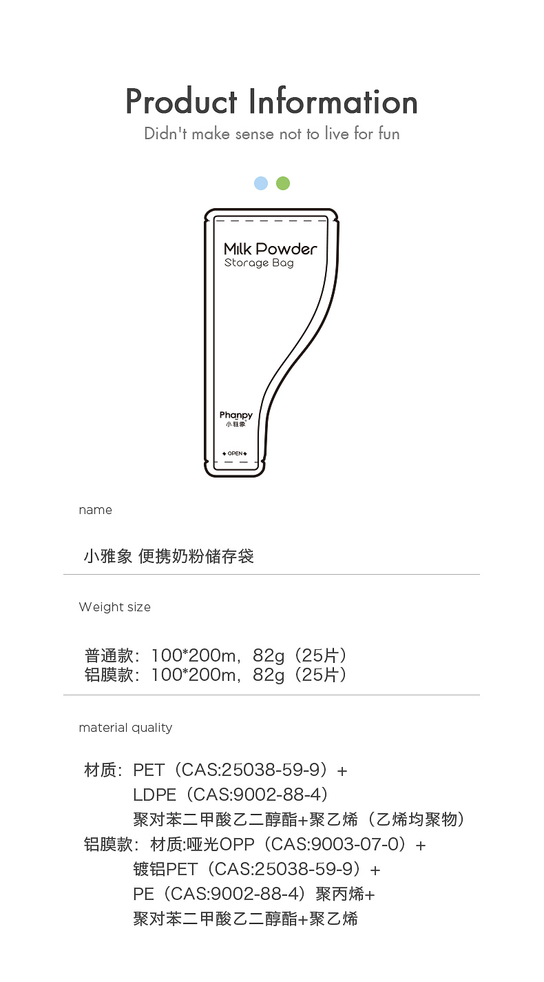 商品名称:小雅象奶粉袋便携一次性外出分装盒婴儿储奶小容量保鲜密封储存袋