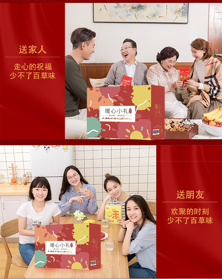 百草味暖心小礼零食礼盒608g坚果零食大礼包网红下午茶休闲充饥夜宵礼盒