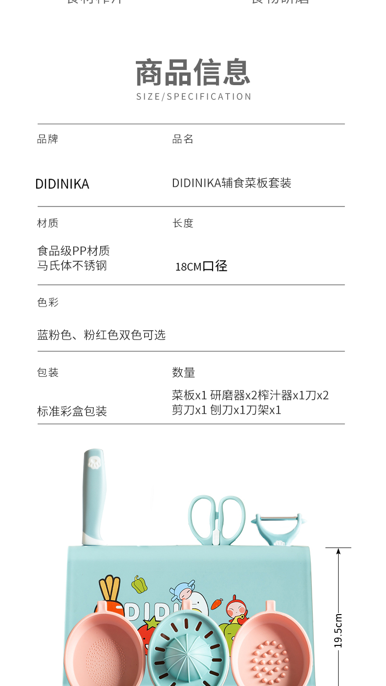 商品名称:【品牌直供】迪迪尼卡新款九件套宝宝菜板婴儿辅食菜刀具套装工具全套菜刀砧板二合一