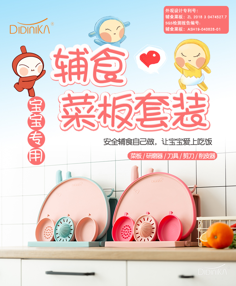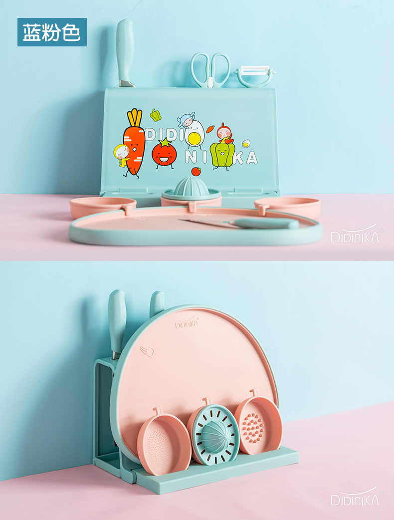 【品牌直供】迪迪尼卡新款九件套宝宝菜板婴儿辅食菜刀具套装工具全套菜刀砧板二合一