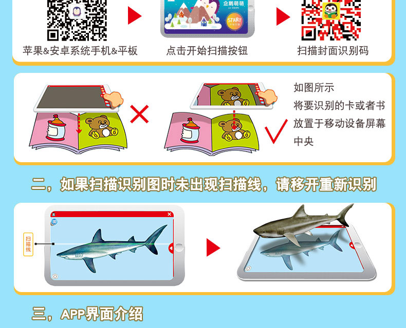 企鹅萌萌婴幼儿童启蒙认知学习书3D扫扫乐动物交通工具形状书水果卡片精美礼盒礼物