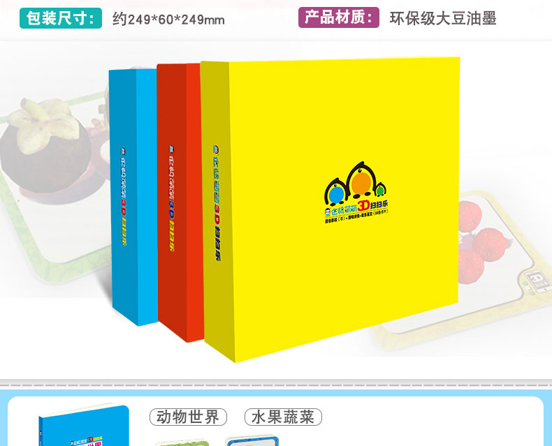 商品名称:企鹅萌萌婴幼儿童启蒙认知学习书3D扫扫乐动物交通工具形状书水果卡片精美礼盒礼物