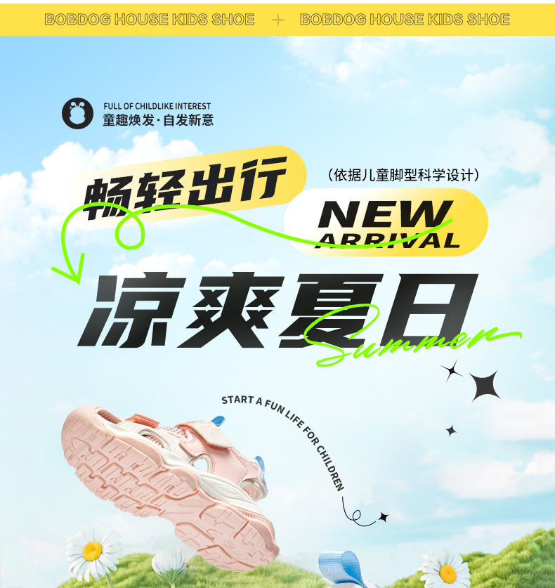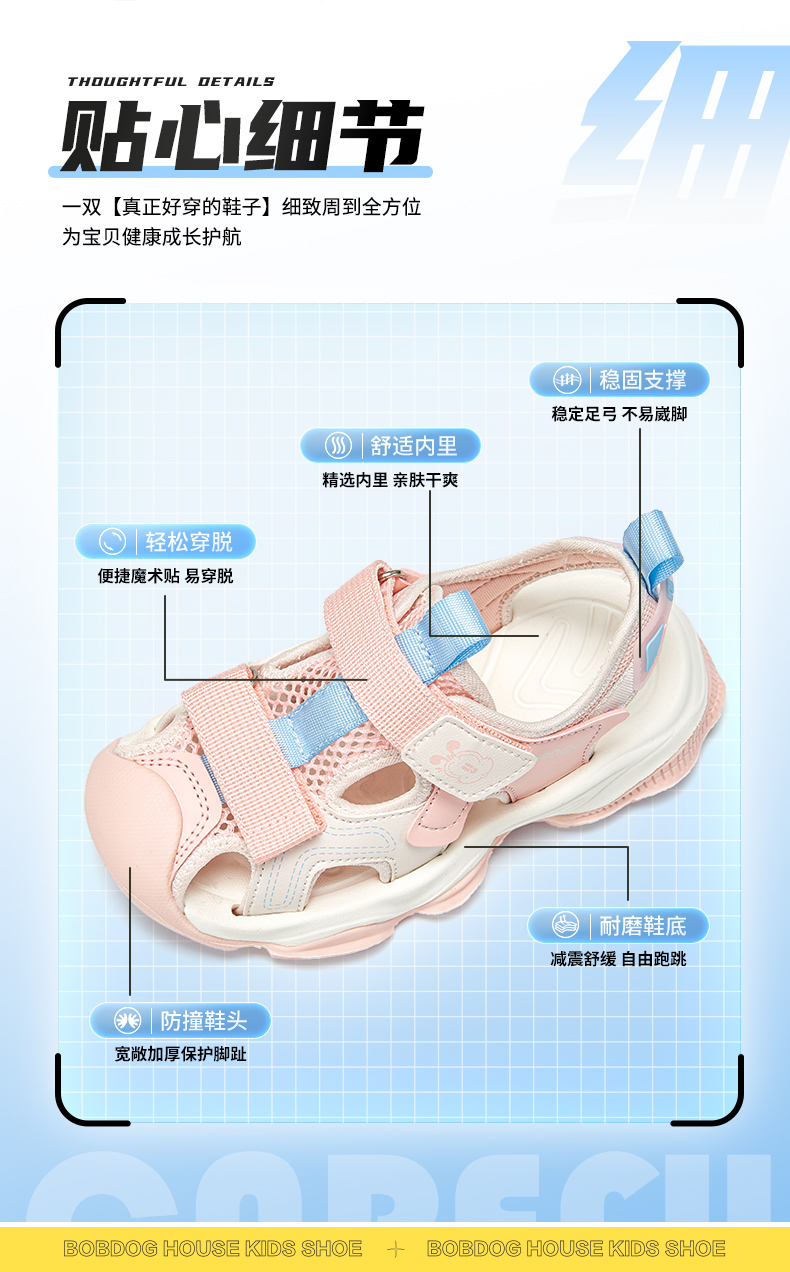 商品名称:【热销爆款】2025夏季新款巴布豆house童鞋软底舒适包头沙滩鞋男童女童网面透气凉鞋