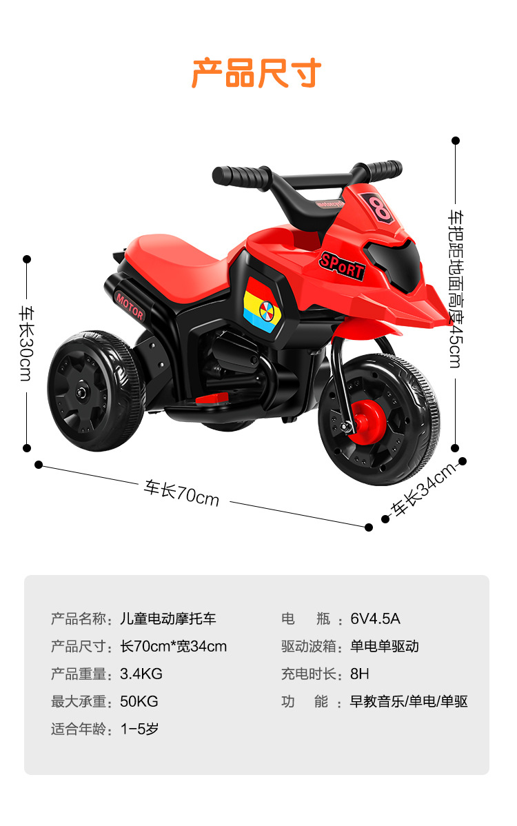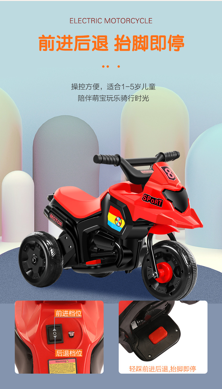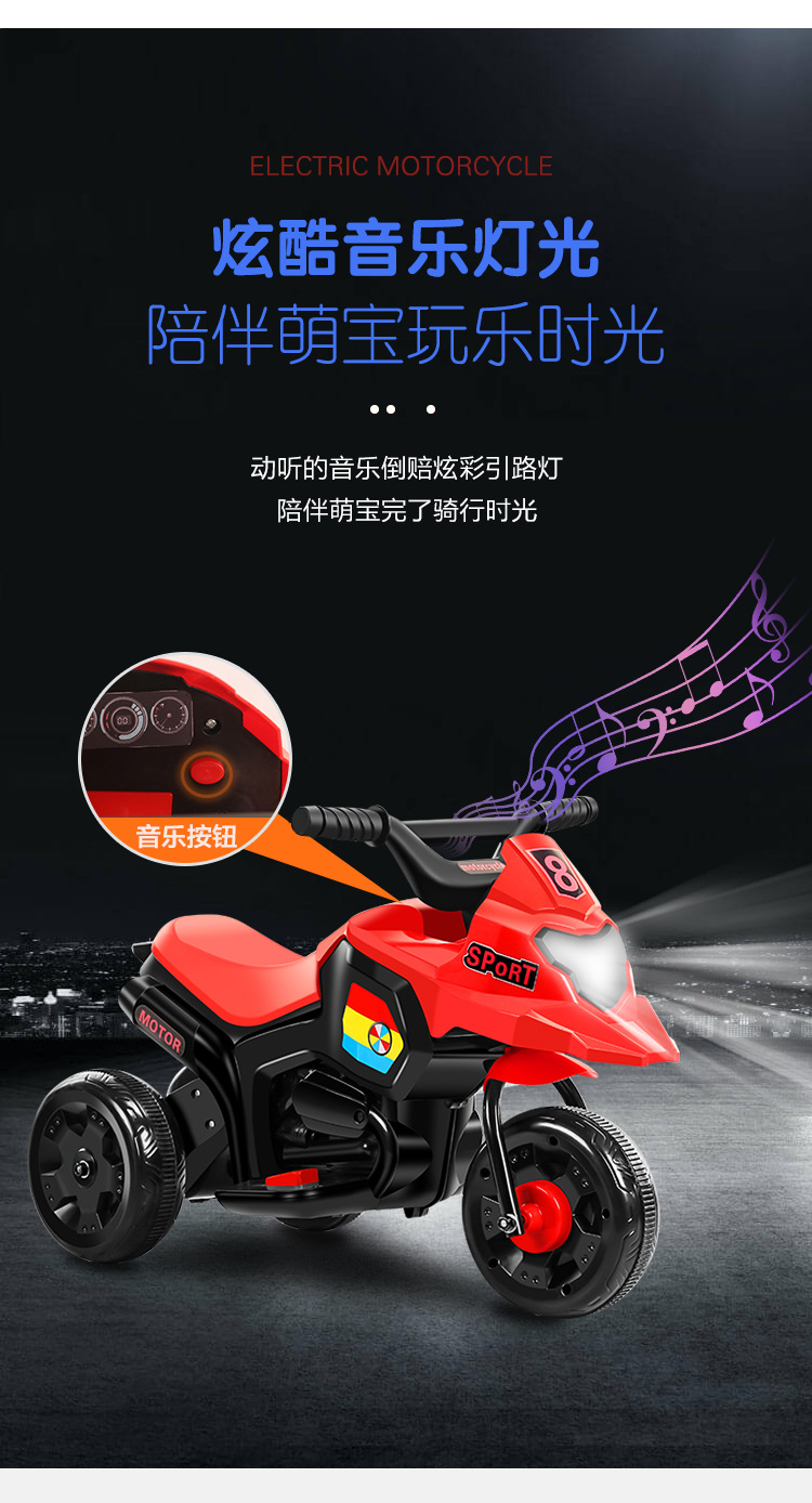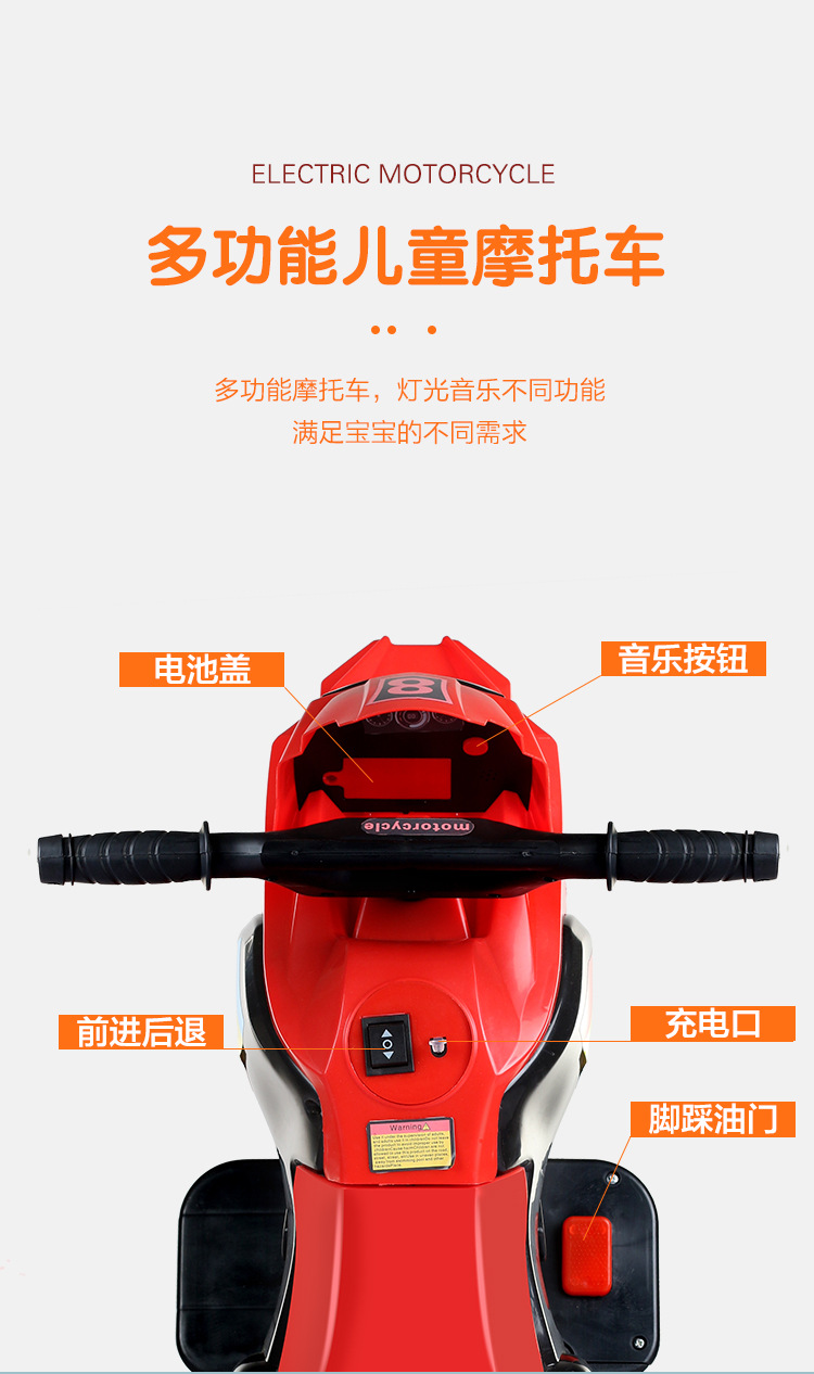 商品名称:小盟主儿童电动摩托车 三轮电动车音乐早教摩托车一键启动电动玩具车