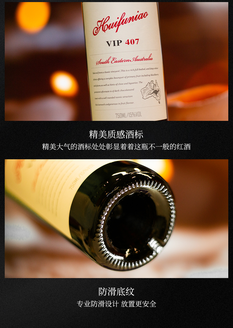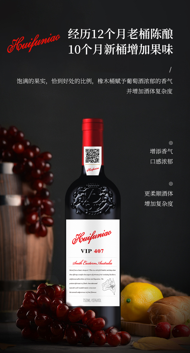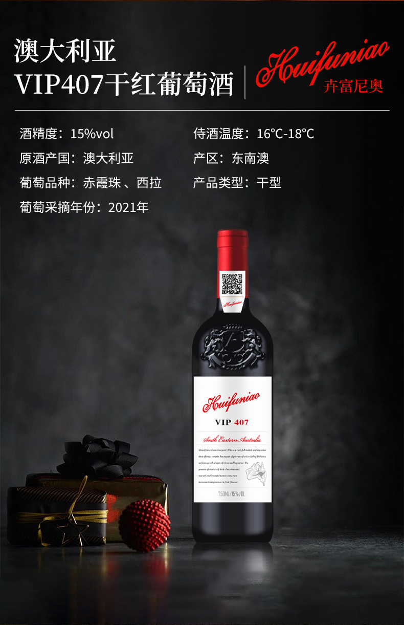商品名称:【买一箱送一箱】澳洲进口红酒15度 VIP407干红葡萄酒高档礼盒整箱750ml/1瓶 1箱6瓶