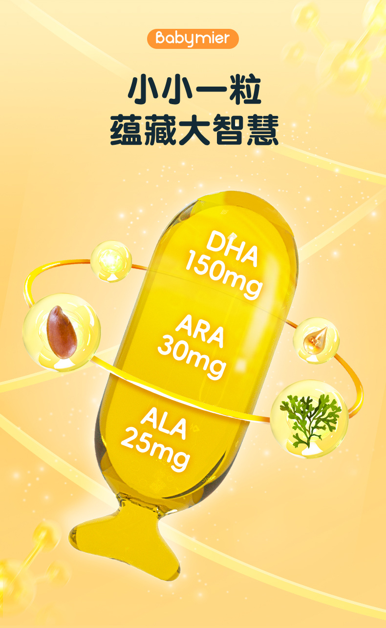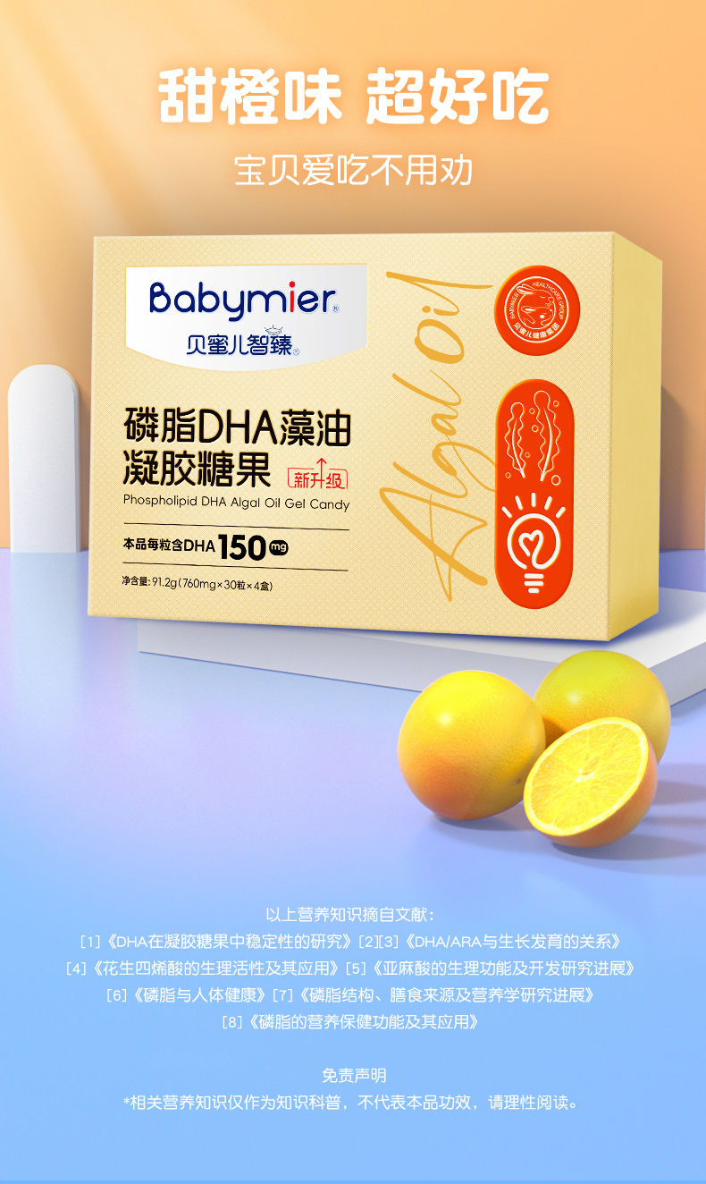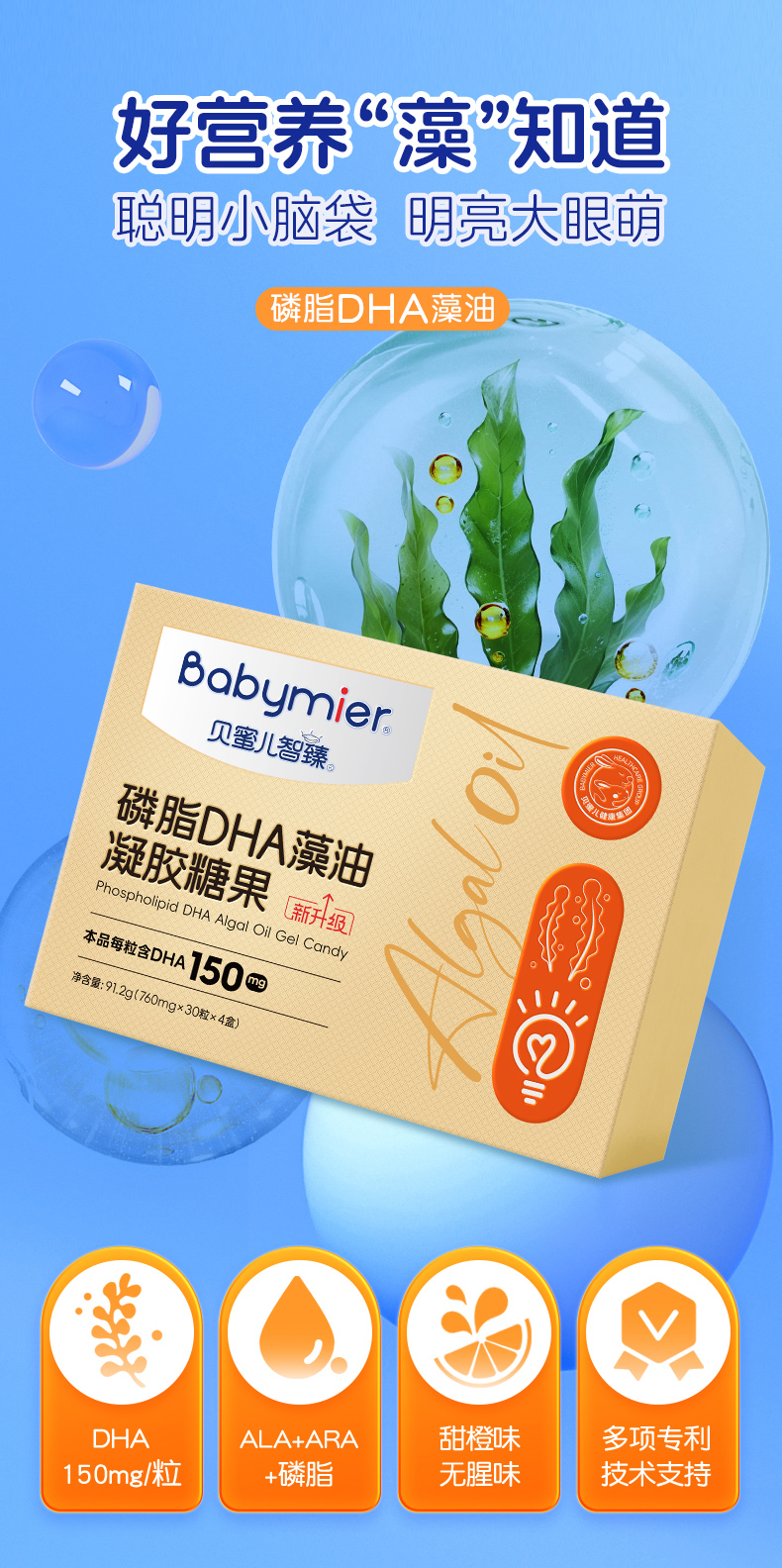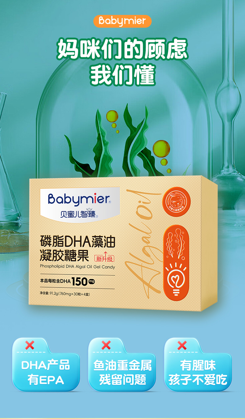 贝蜜儿智臻磷脂dha藻油凝胶糖果软胶囊少年儿童孕妇液体DHA滴剂礼盒120粒