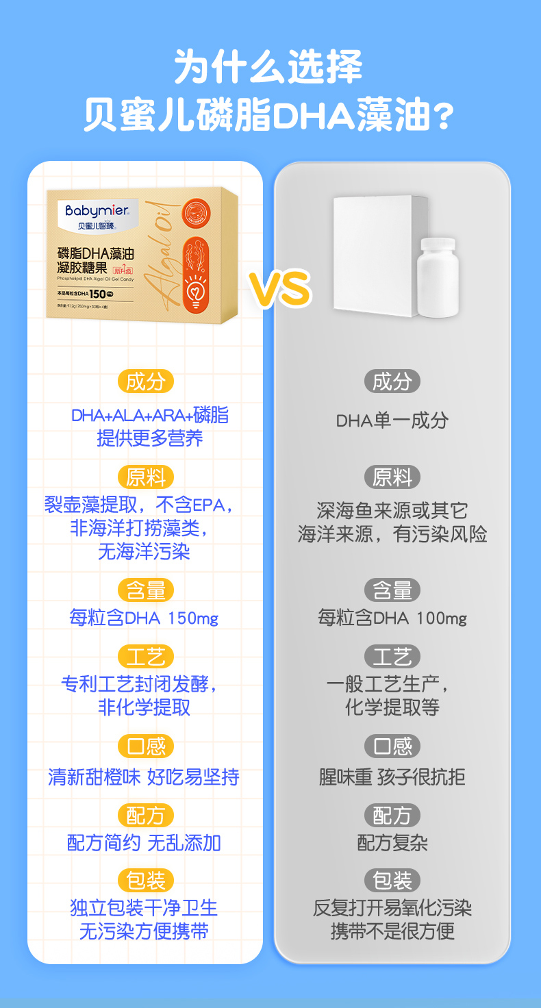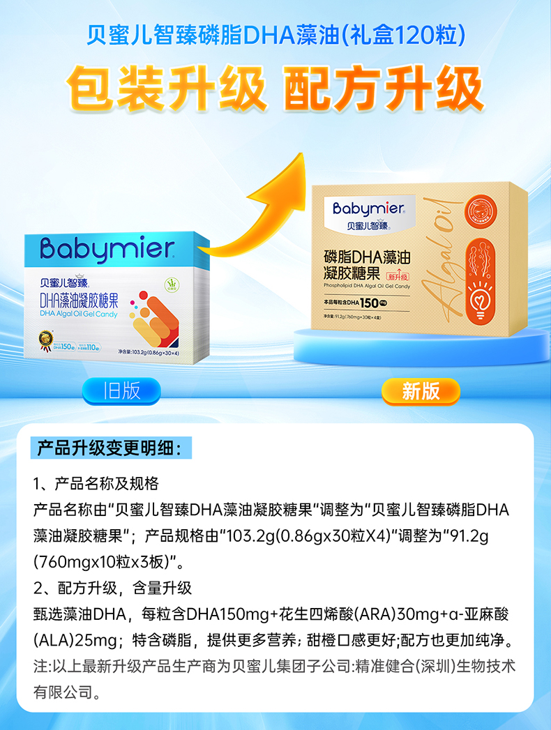 商品名称:贝蜜儿智臻磷脂dha藻油凝胶糖果软胶囊少年儿童孕妇液体DHA滴剂礼盒120粒