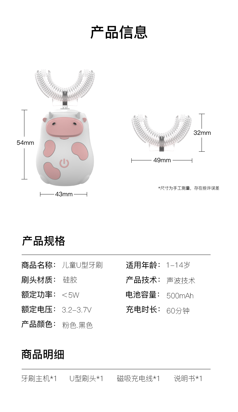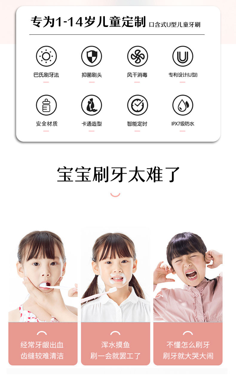 商品名称:良品物语Birthstory儿童牙刷U形电动全自动宝宝硅胶软毛牙刷小孩刷牙洁牙护牙神器