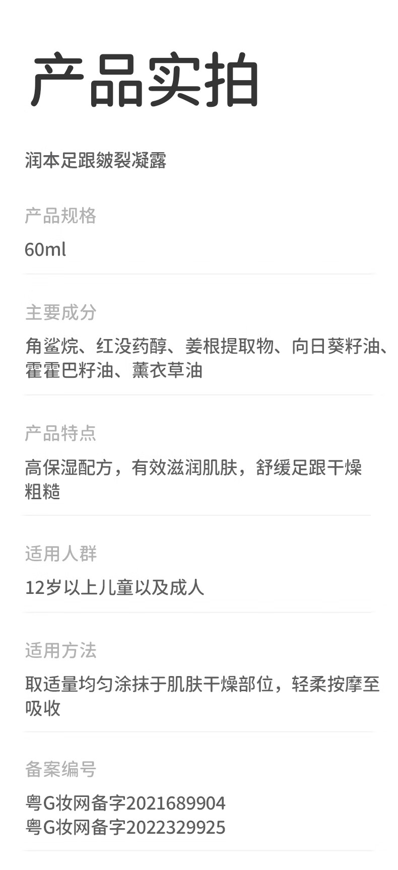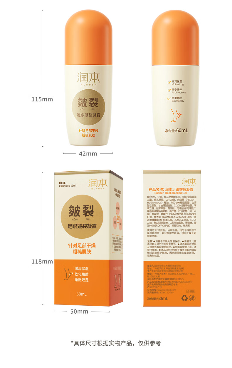 商品名称:润本皴裂凝露脚后跟干裂霜治防裂手足手裂皲裂膏保湿滋润皴裂凝露