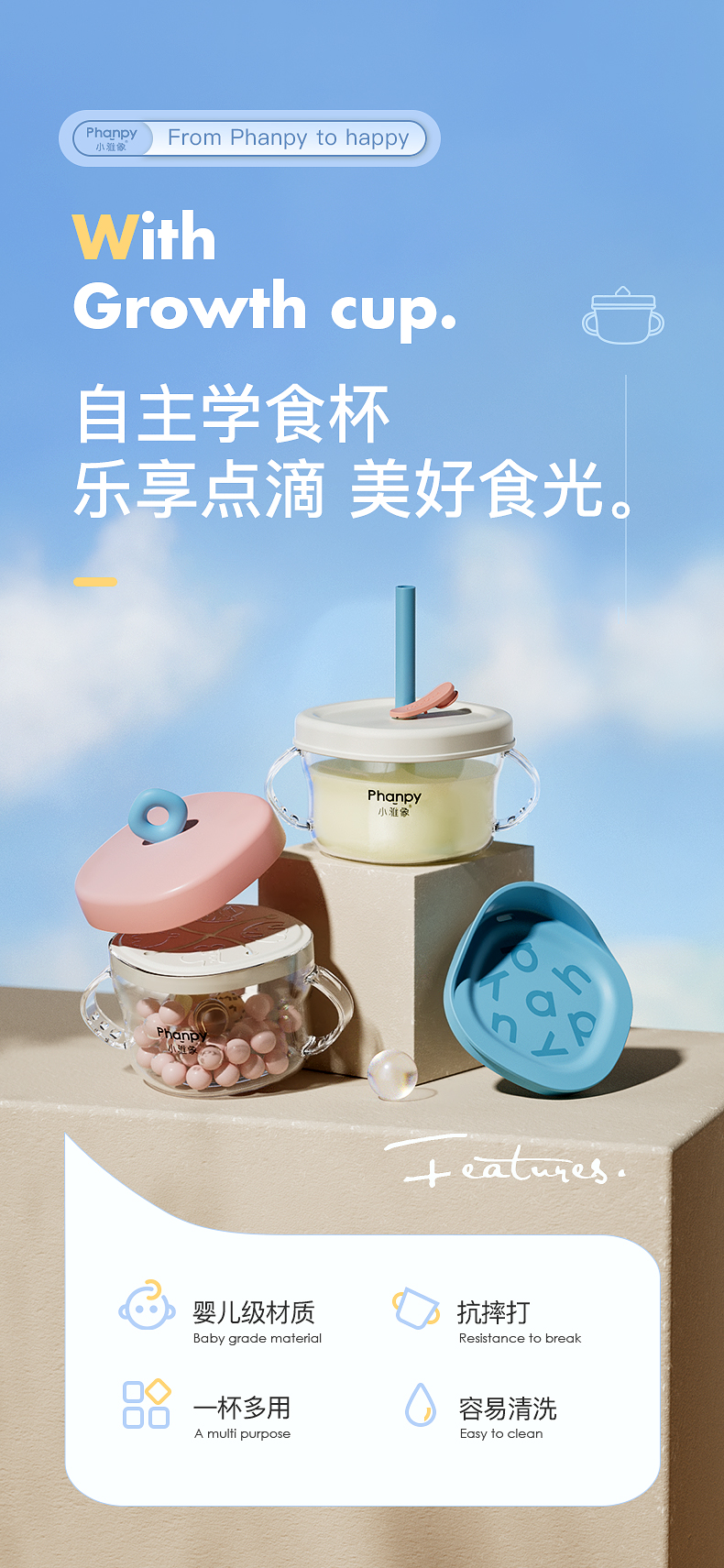 商品名称:VS小雅象phanpy婴儿零食碗防漏防摔宝宝辅食碗可与吸管杯通用