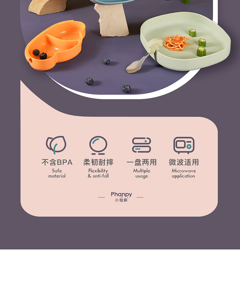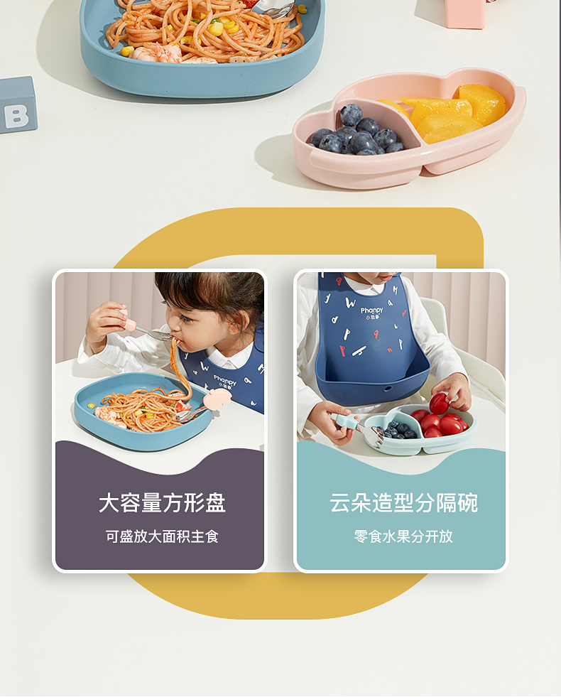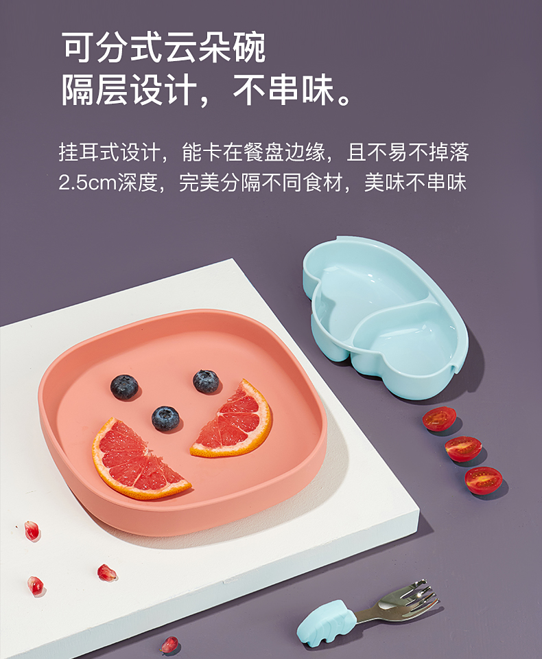 商品名称:vs小雅象phanpy宝宝餐盘硅胶婴幼儿吸盘一体式儿童餐具吃饭分格防摔辅食碗