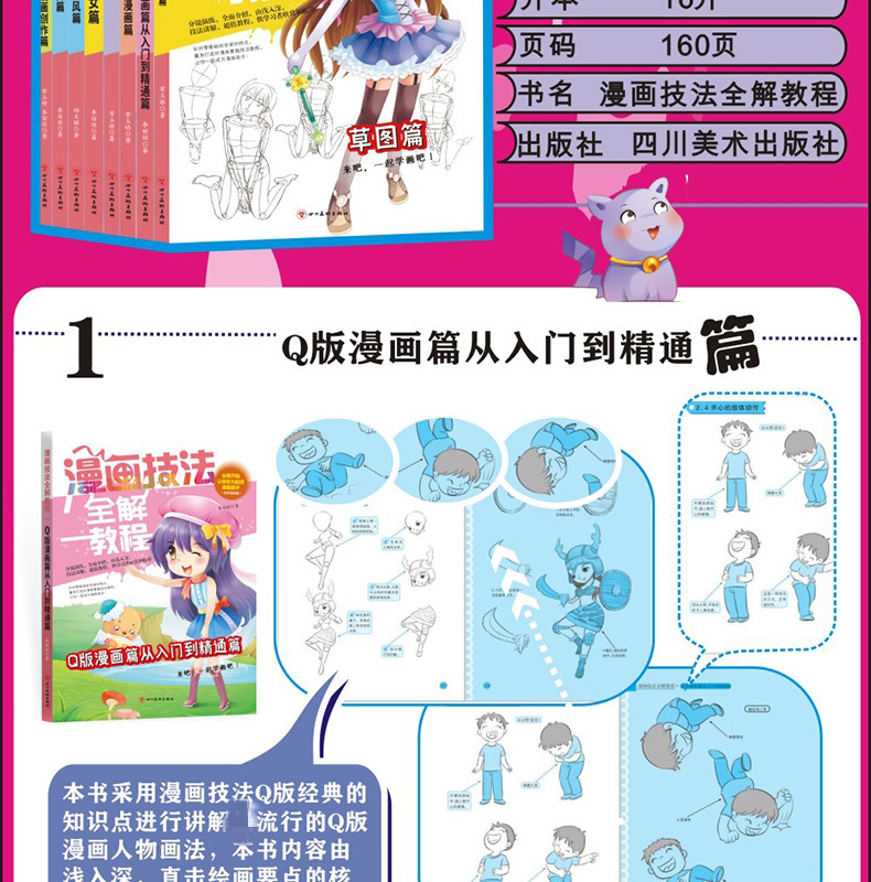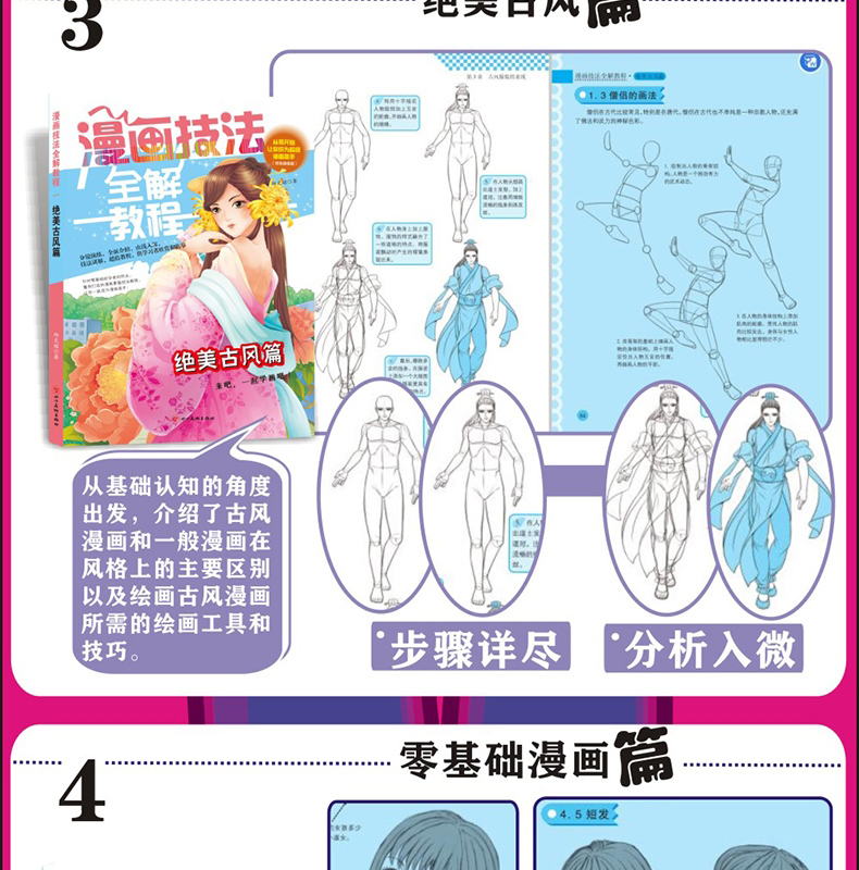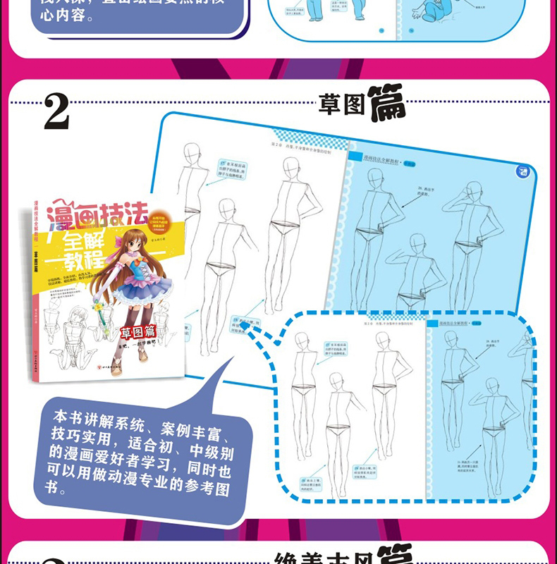 商品名称:漫画技法全解教程全零基础美少男少女草图古风造型入门到精通篇自学画画技法教材书籍