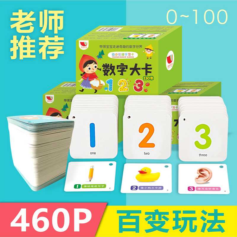 18点30包邮秒杀 幼小衔接学习卡数字大卡230张2-6岁学前盒装儿童启蒙双面益智玩具早教卡