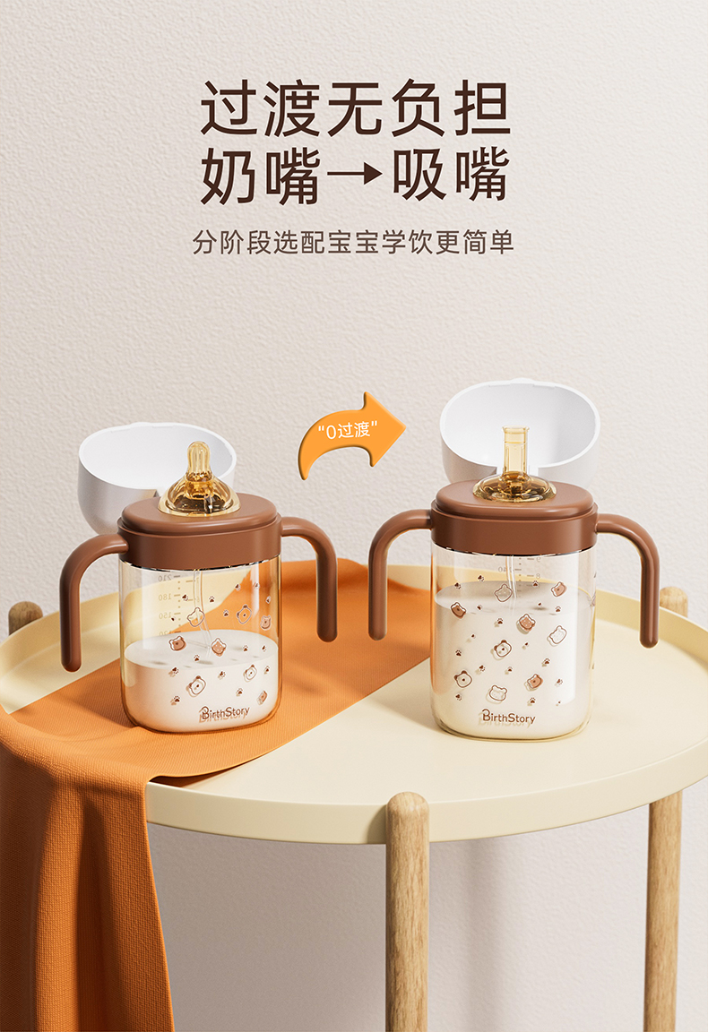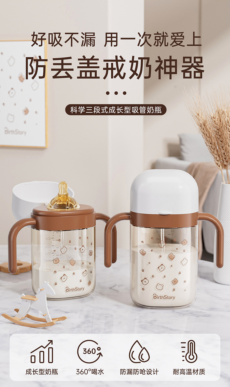 良品物语婴儿ppsu翻盖奶瓶断奶神器儿童防丢盖吸管喝水杯宝宝学饮杯一杯三用