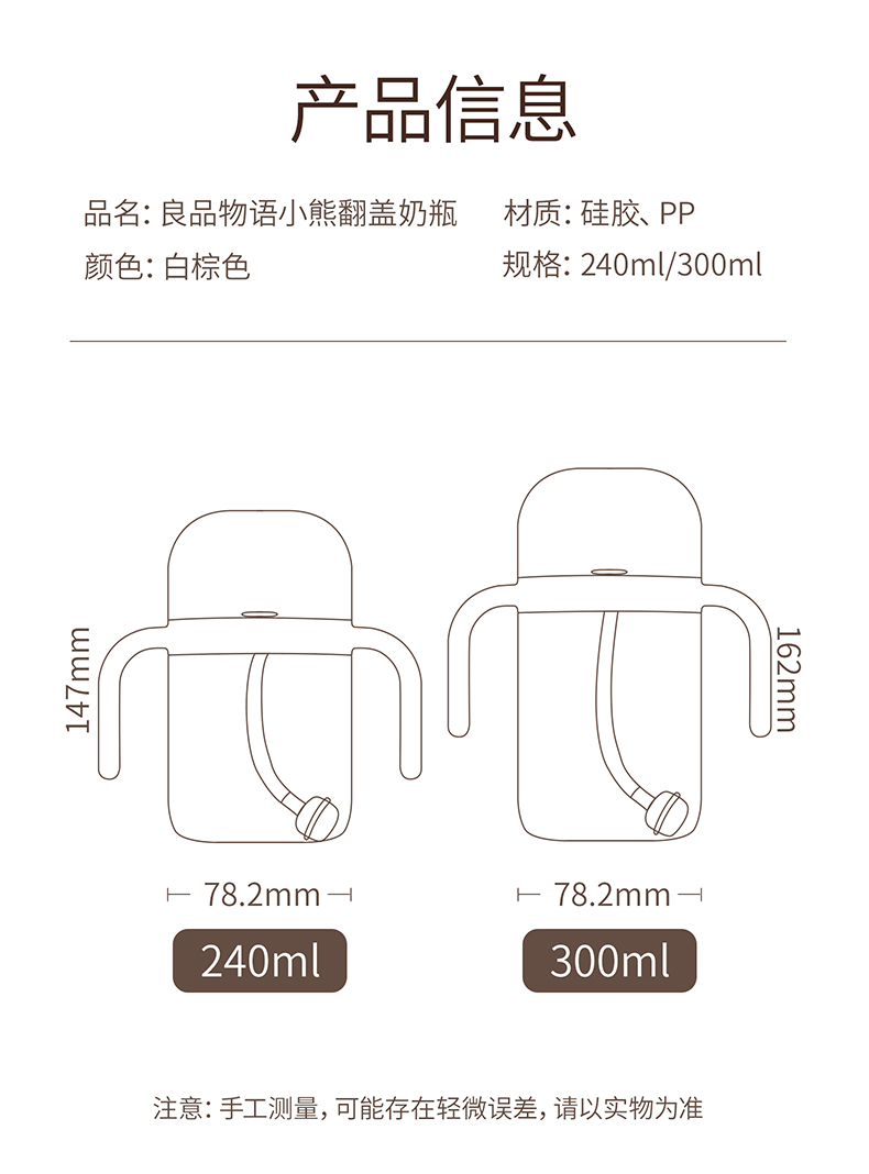商品名称:良品物语婴儿ppsu翻盖奶瓶断奶神器儿童防丢盖吸管喝水杯宝宝学饮杯一杯三用