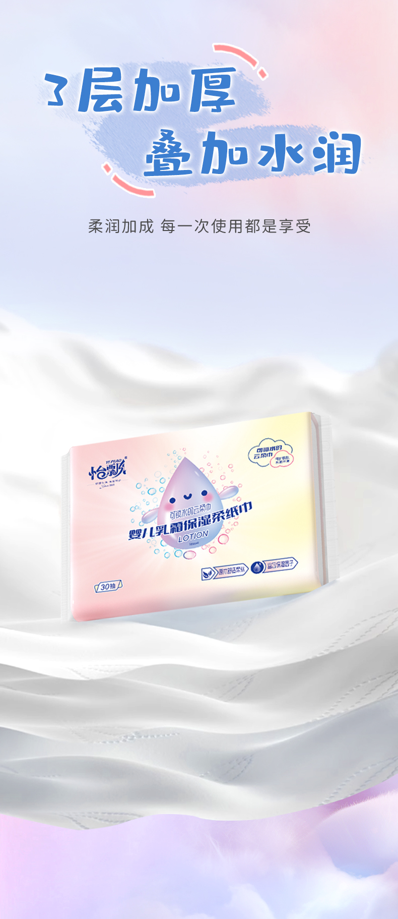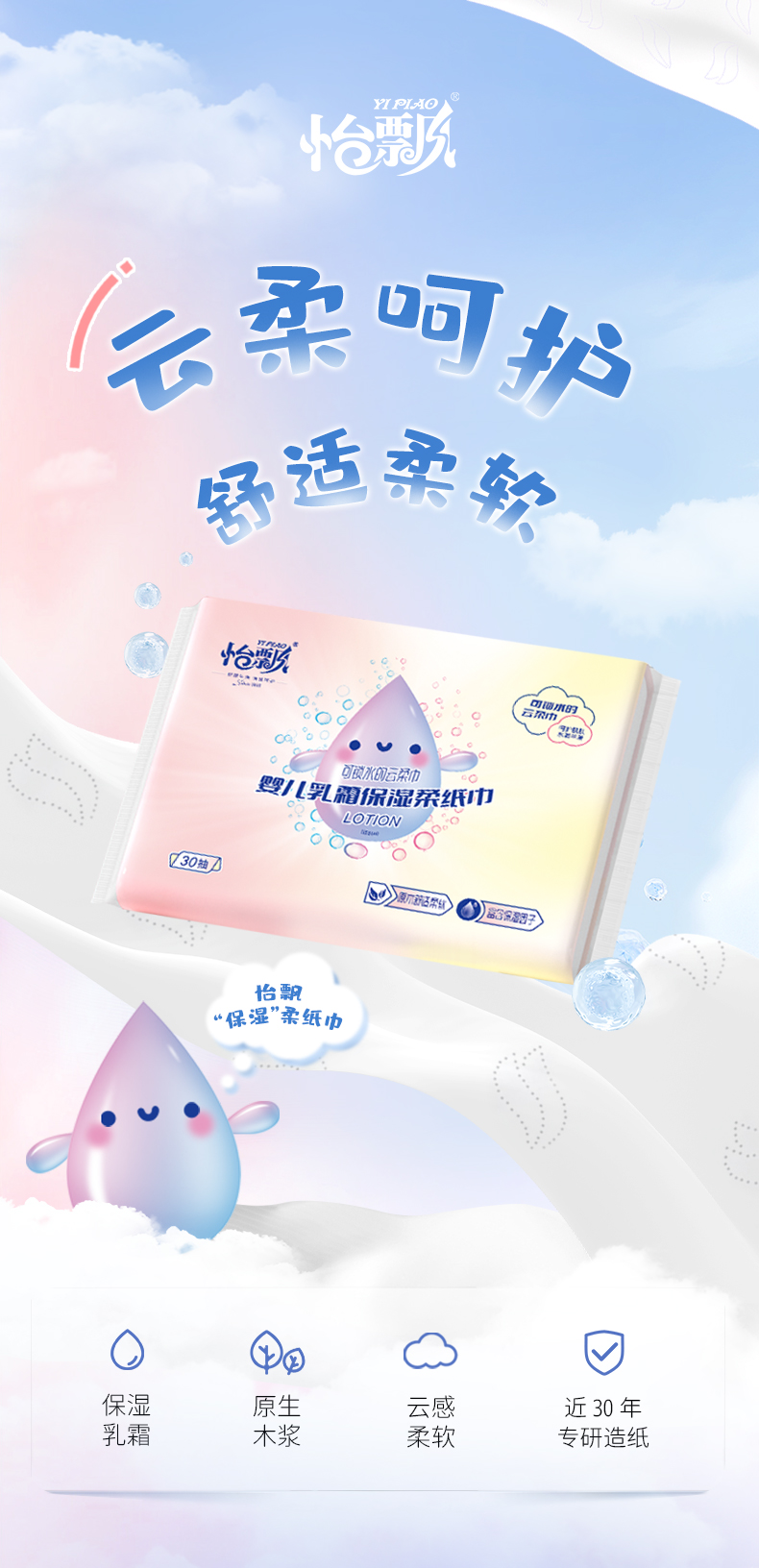 【品牌直供 可心柔同款】怡飘婴儿乳霜柔肤柔纸巾宝宝专用保湿云柔巾30抽*45包