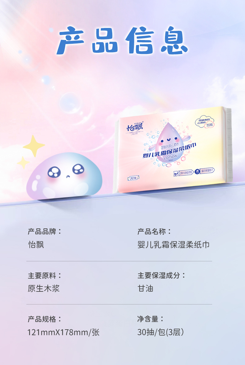 商品名称:【品牌直供 可心柔同款】怡飘婴儿乳霜柔肤柔纸巾宝宝专用保湿云柔巾30抽*45包