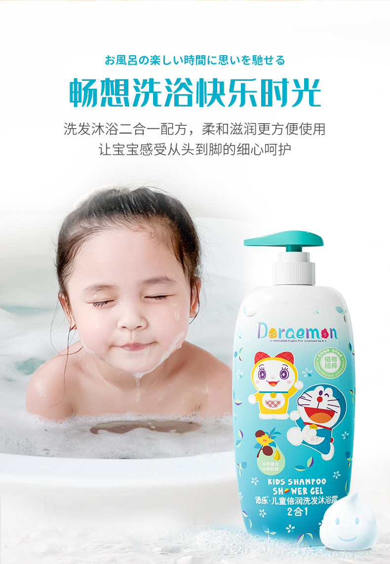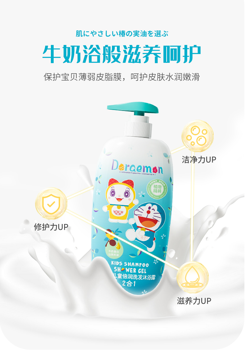 【拍一发三】哆啦A梦儿童倍润洗发沐浴露二合一750g+儿童牙膏(草莓味)+儿童软毛牙刷