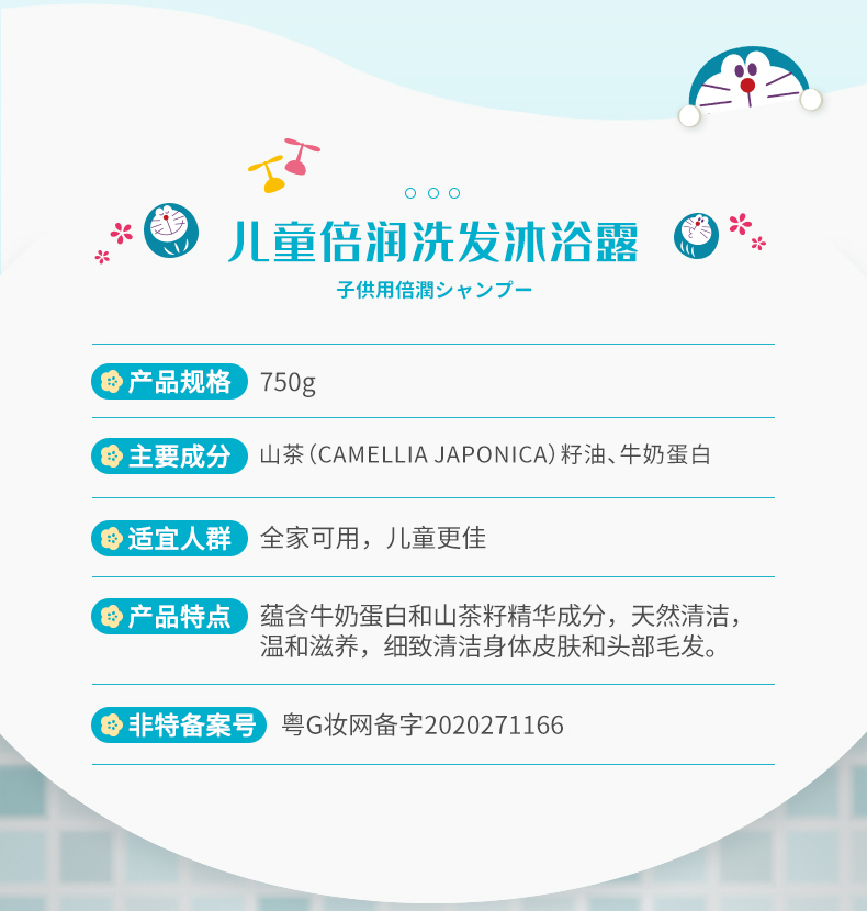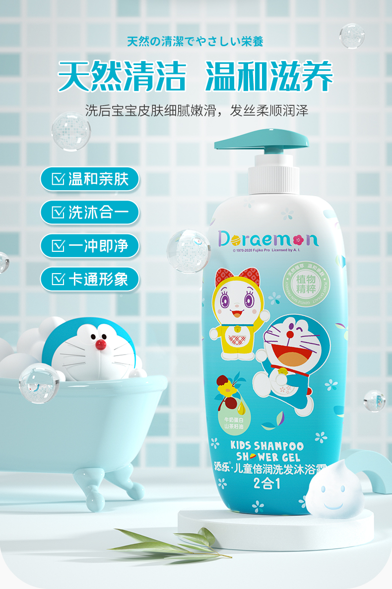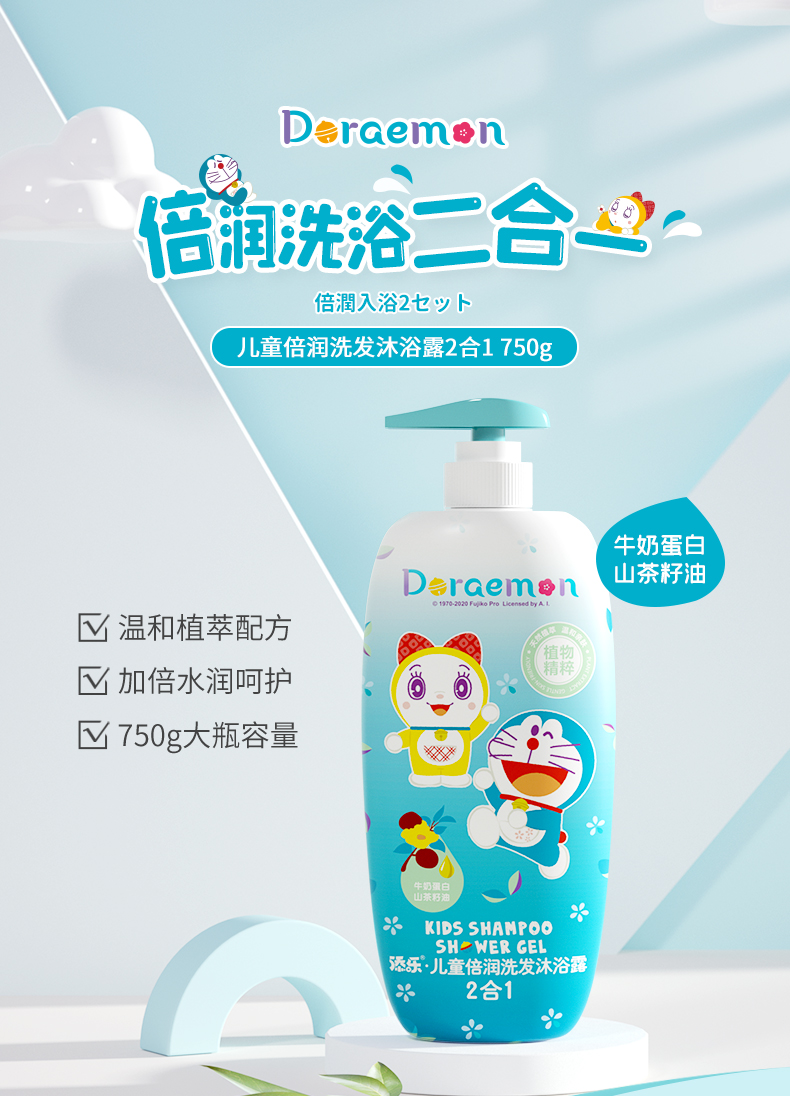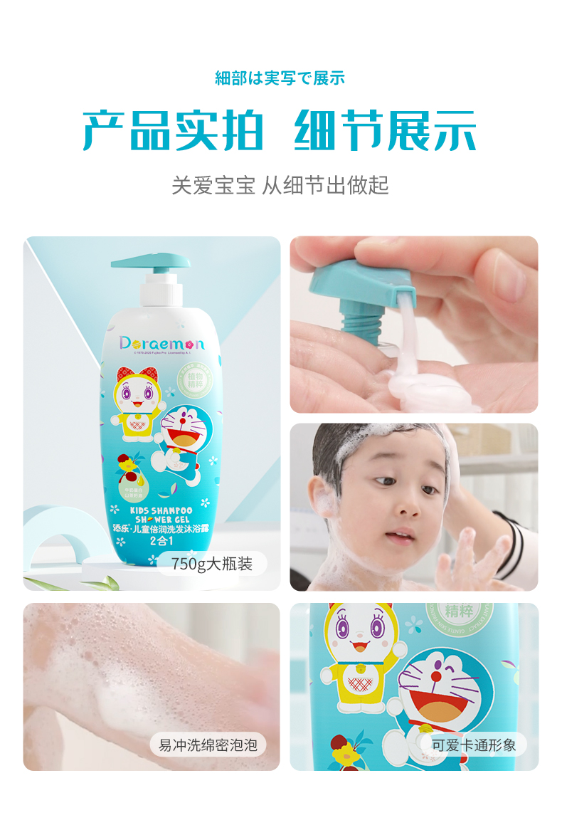 商品名称:【拍一发三】哆啦A梦儿童倍润洗发沐浴露二合一750g+儿童牙膏(草莓味)+儿童软毛牙刷