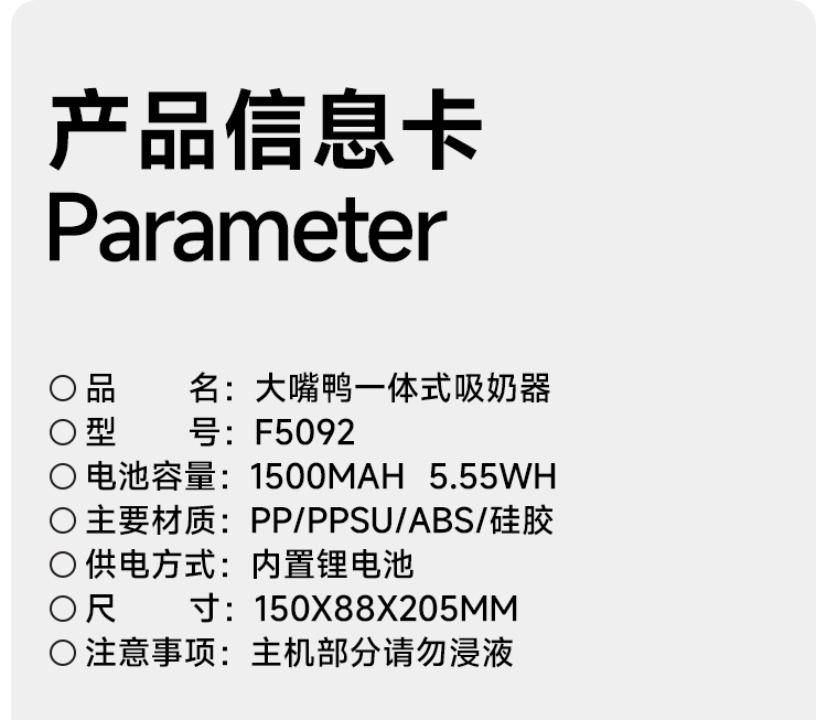 商品名称:boboduck大嘴鸭电动吸奶器母乳全自动免手扶单边一体式便携按摩F5092
