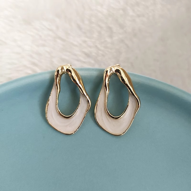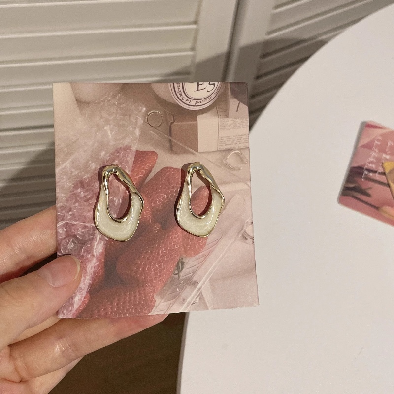 彤彤兔 S925银针韩国东大门复古不规则珍珠白滴釉耳环个性冷淡风耳钉耳饰