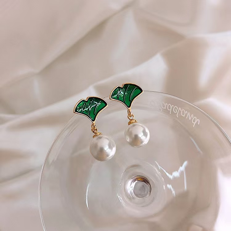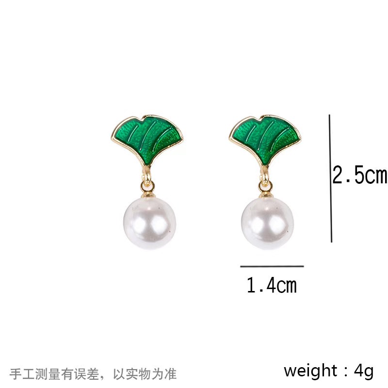 商品名称:彤彤兔 S925银针韩版简约气质小众绿杏叶珍珠款耳钉气质高级耳饰